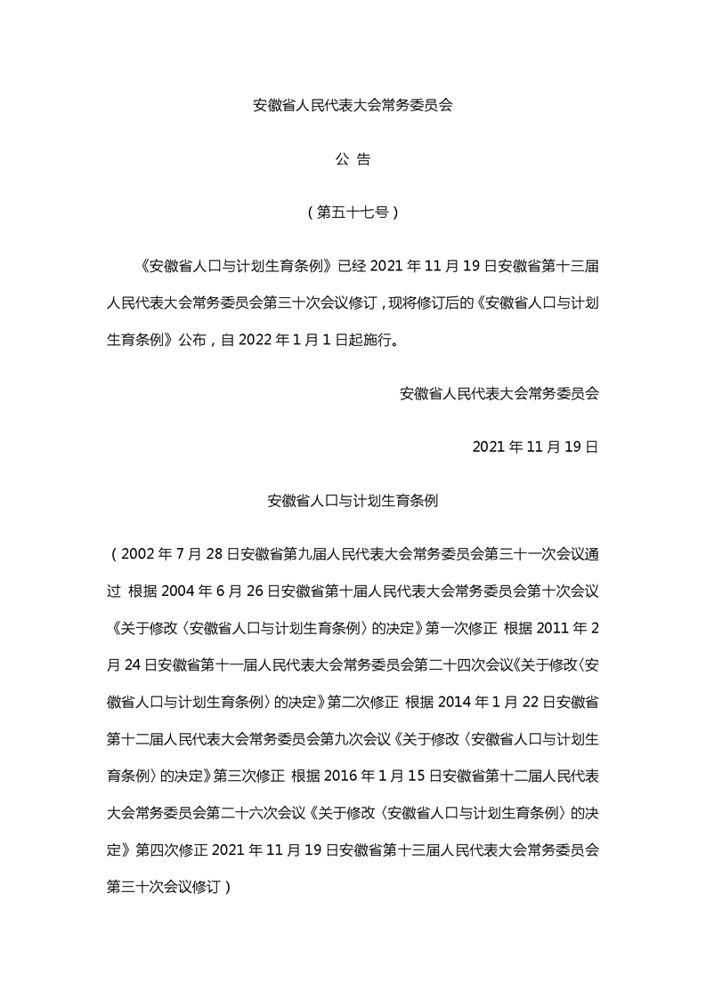 【行政给付类】安徽省人口与计划生育条例