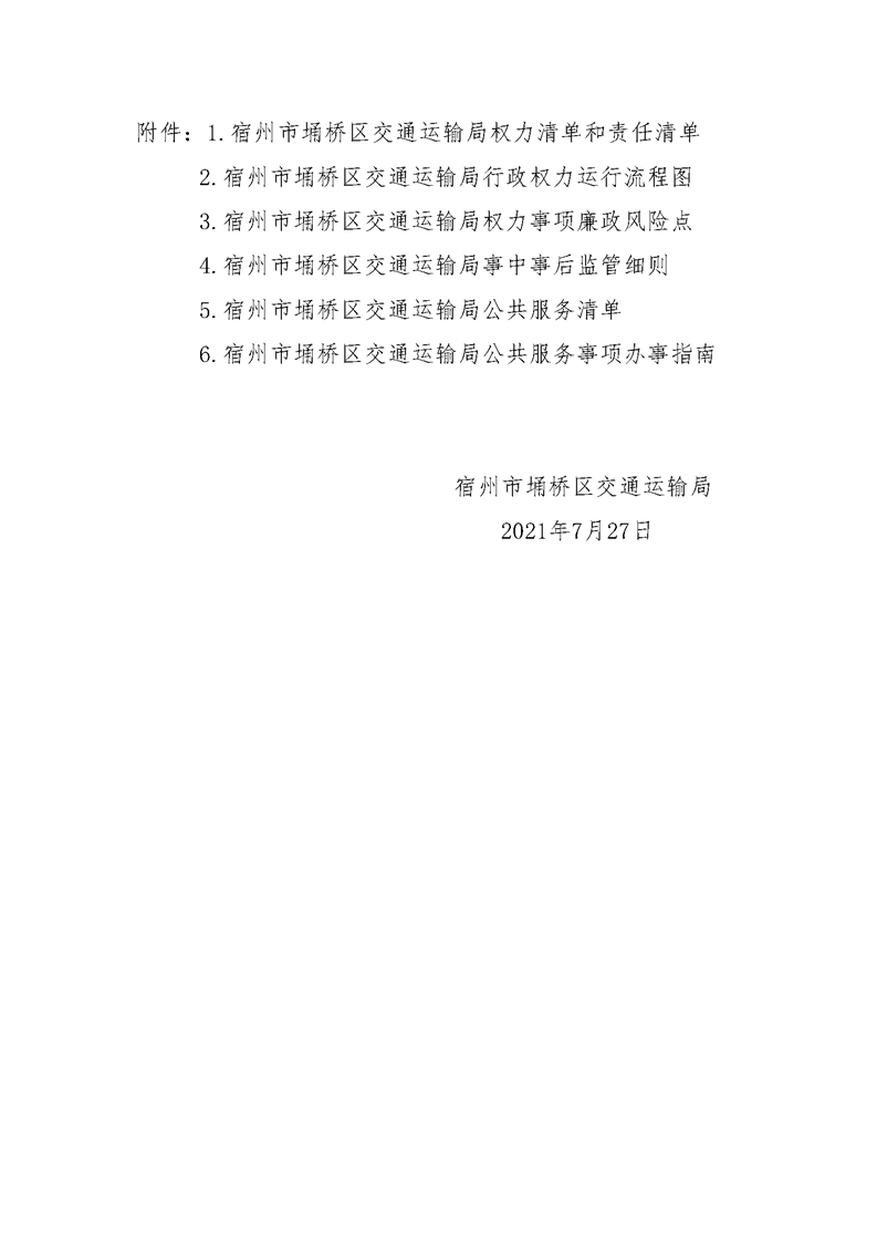 关于公布宿州市埇桥区交通运输局权责清单、公共服务清单、行政权力中介服务清单(2021年本)的通知