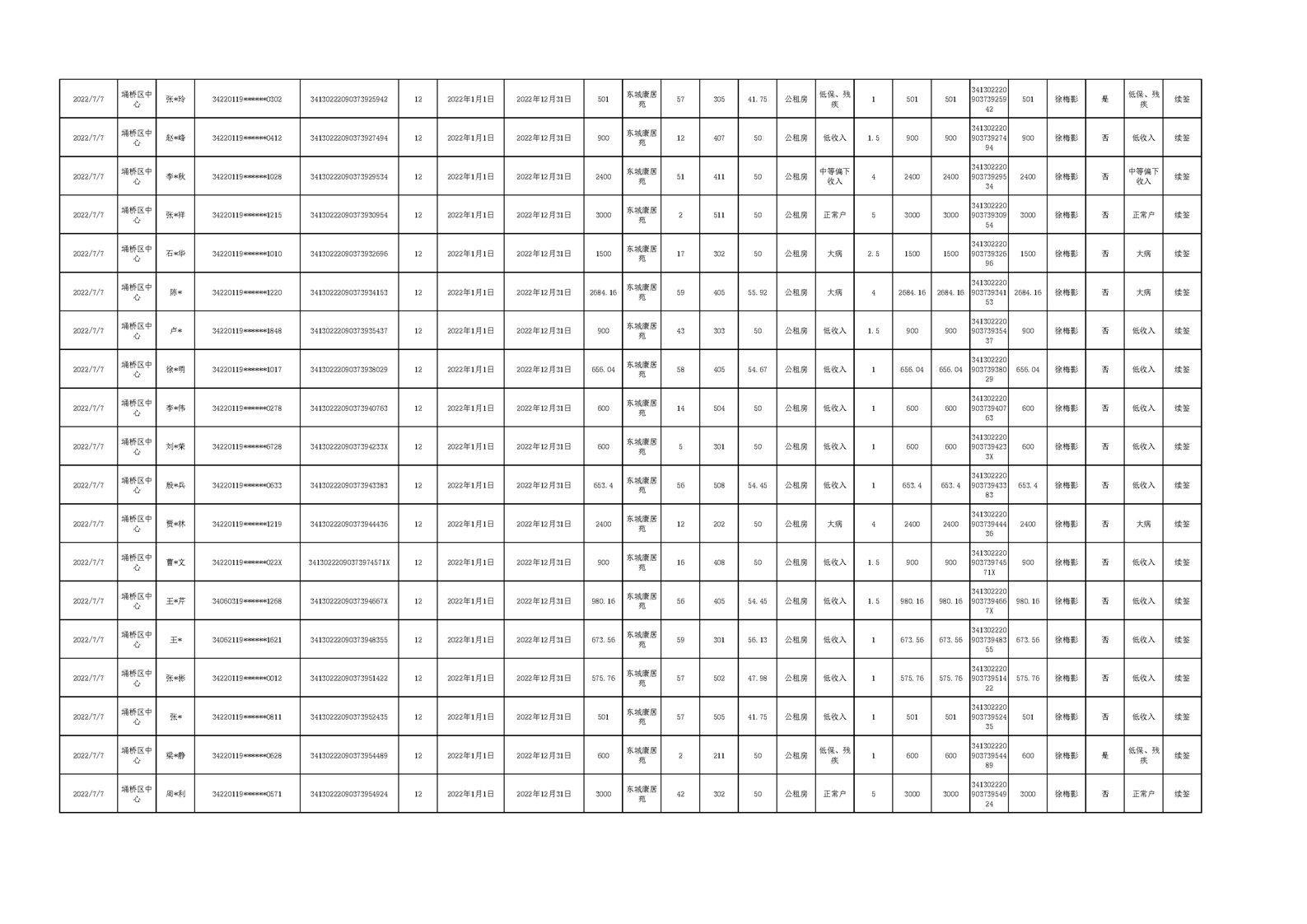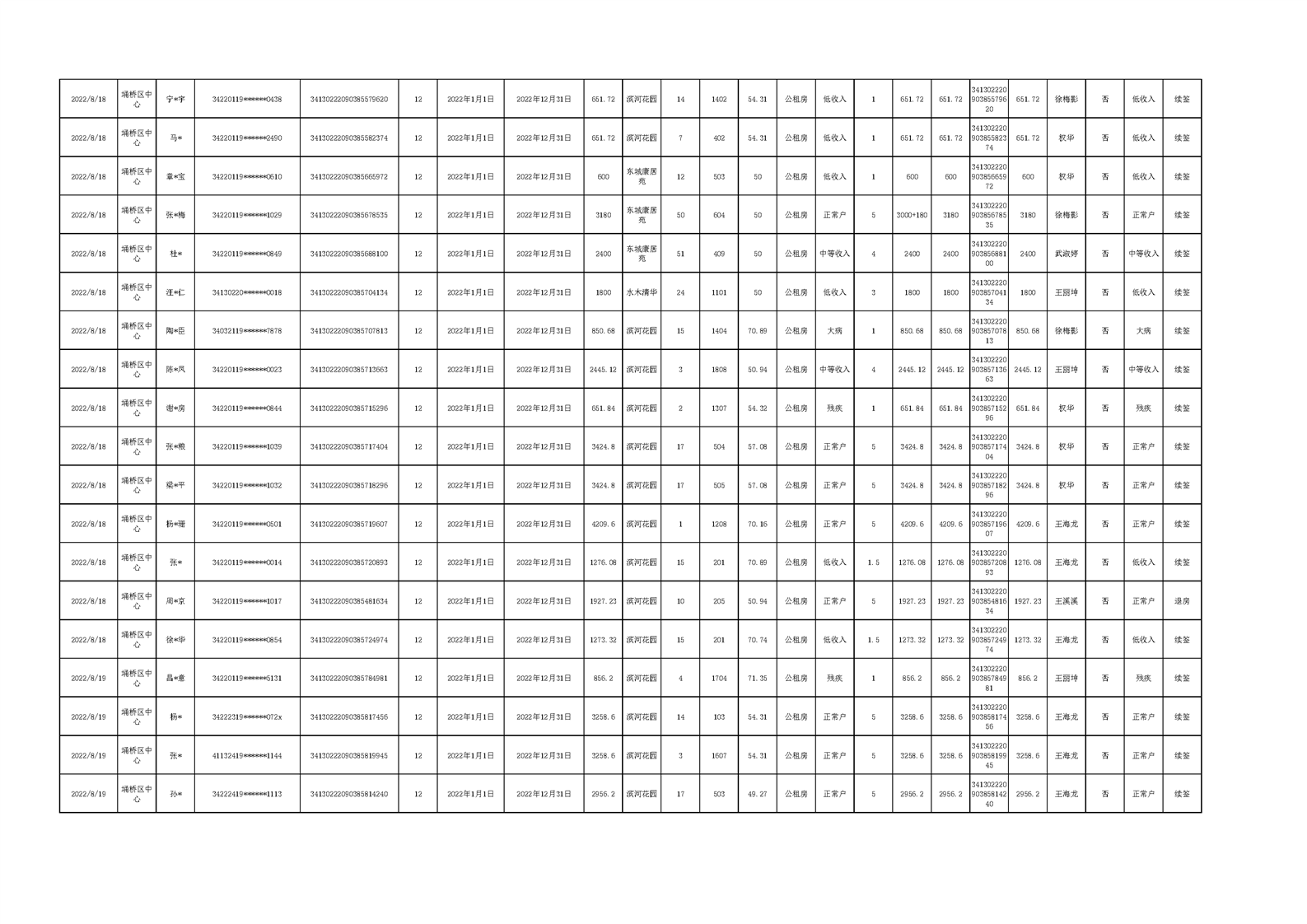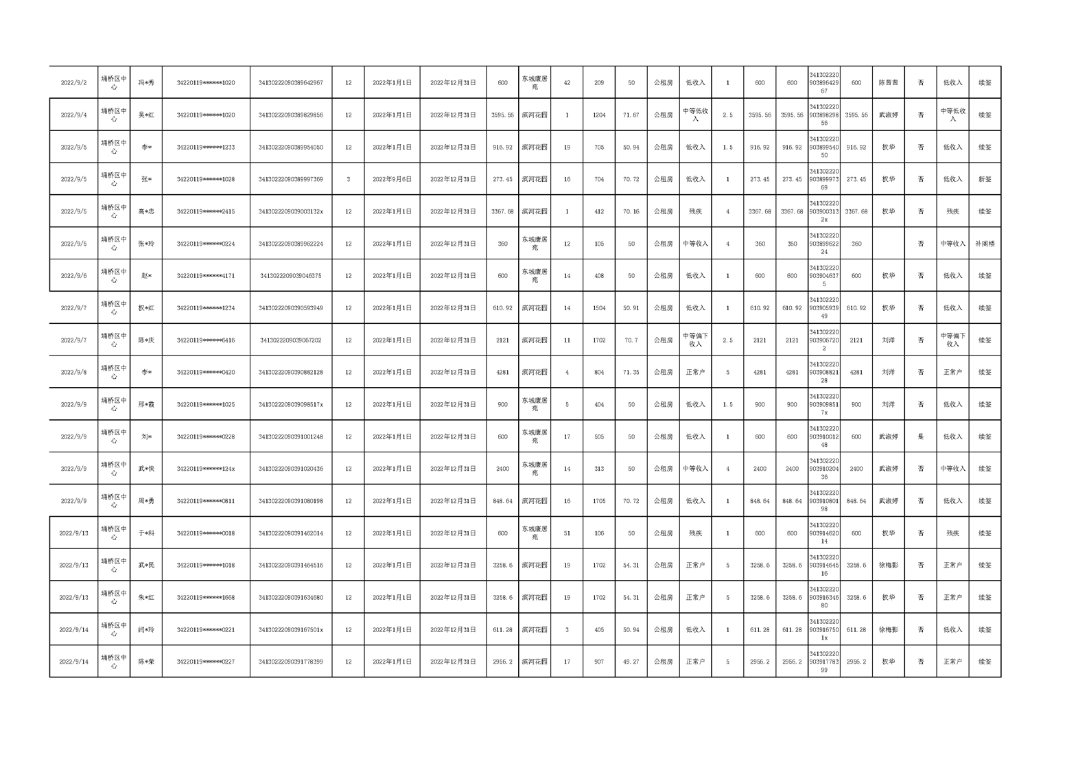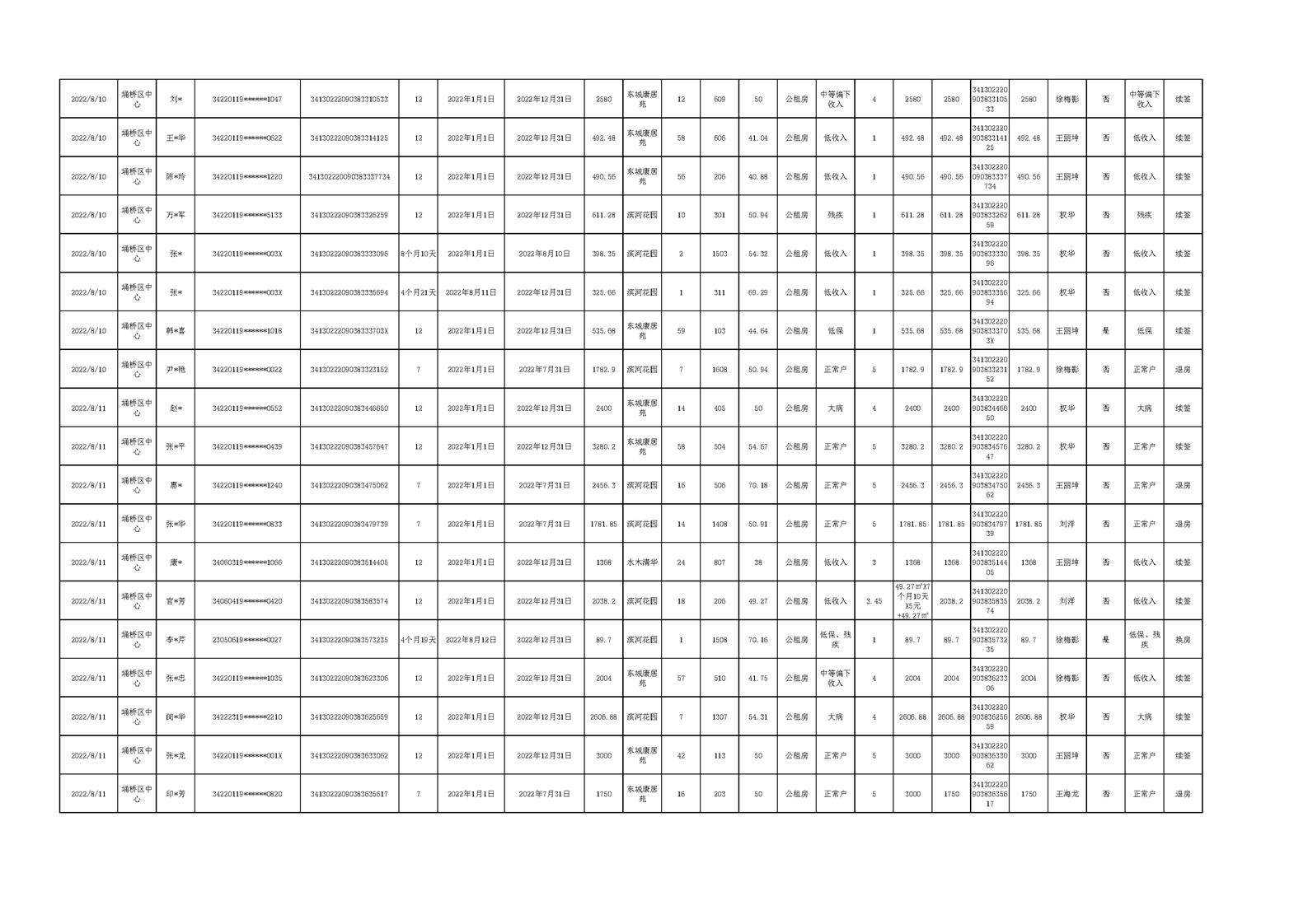 【租金收取】埇桥区2022年三季度保障性住房租金收取信息