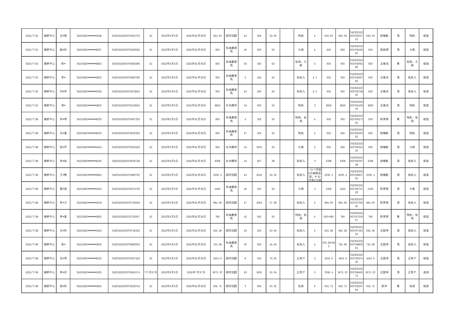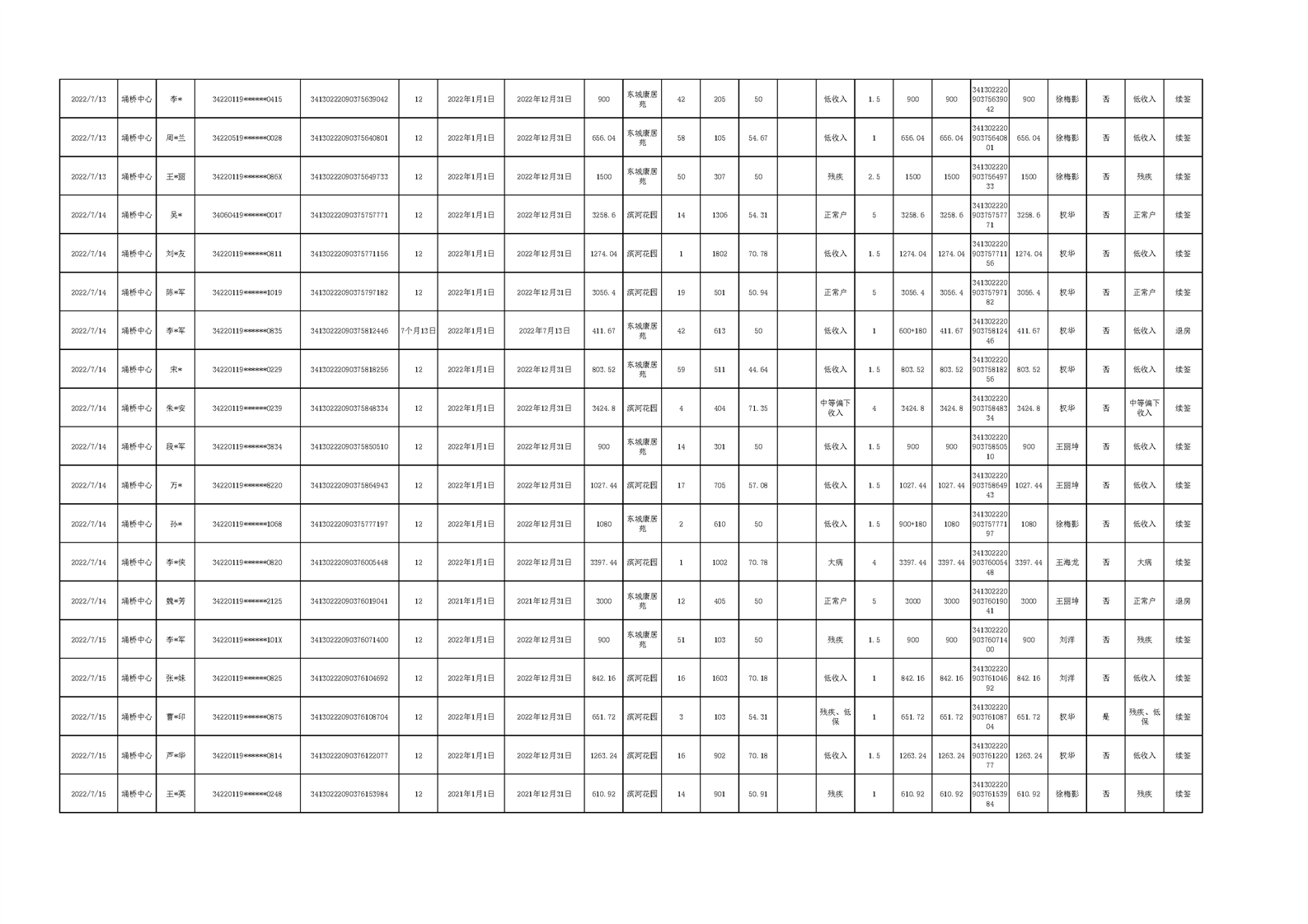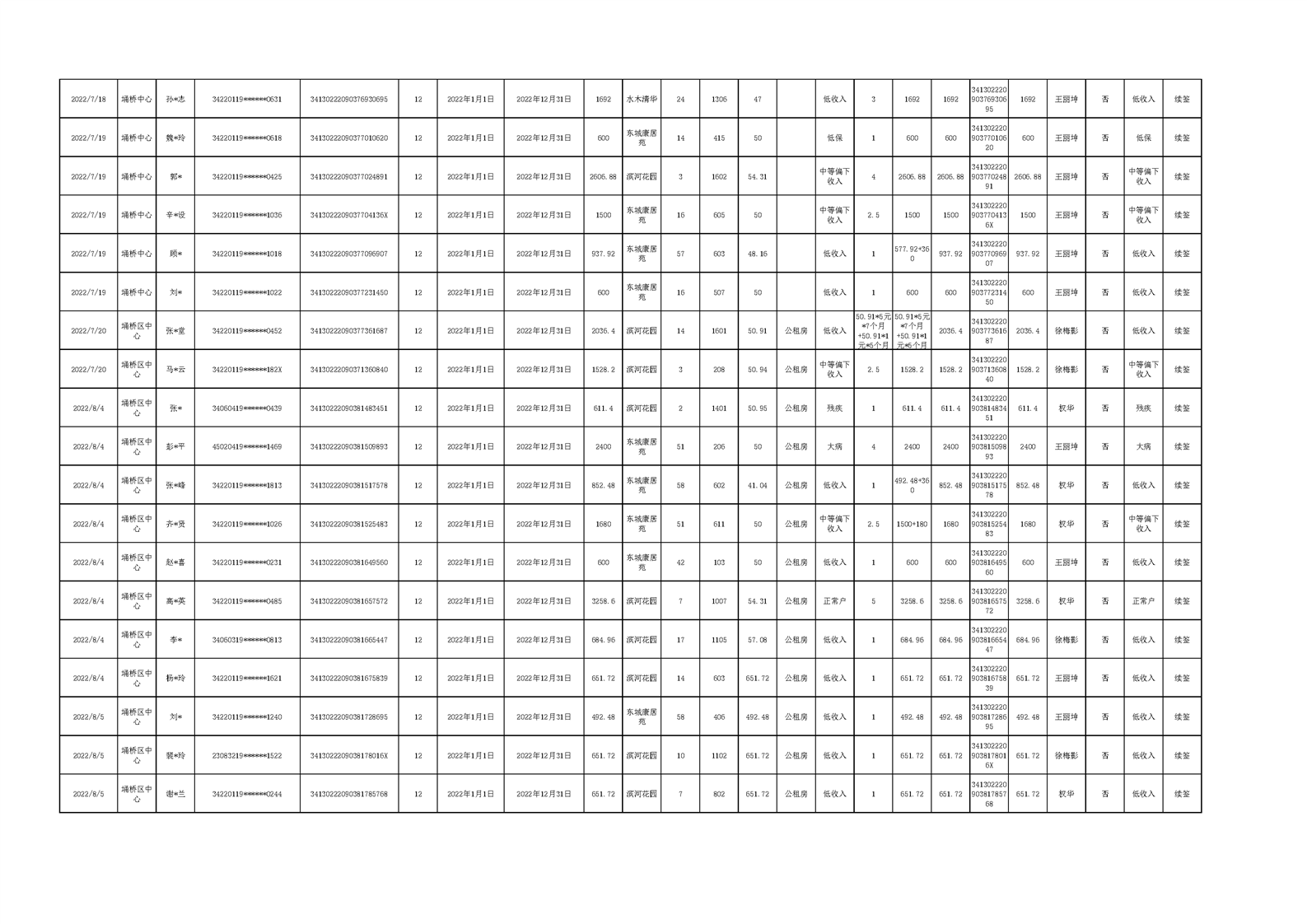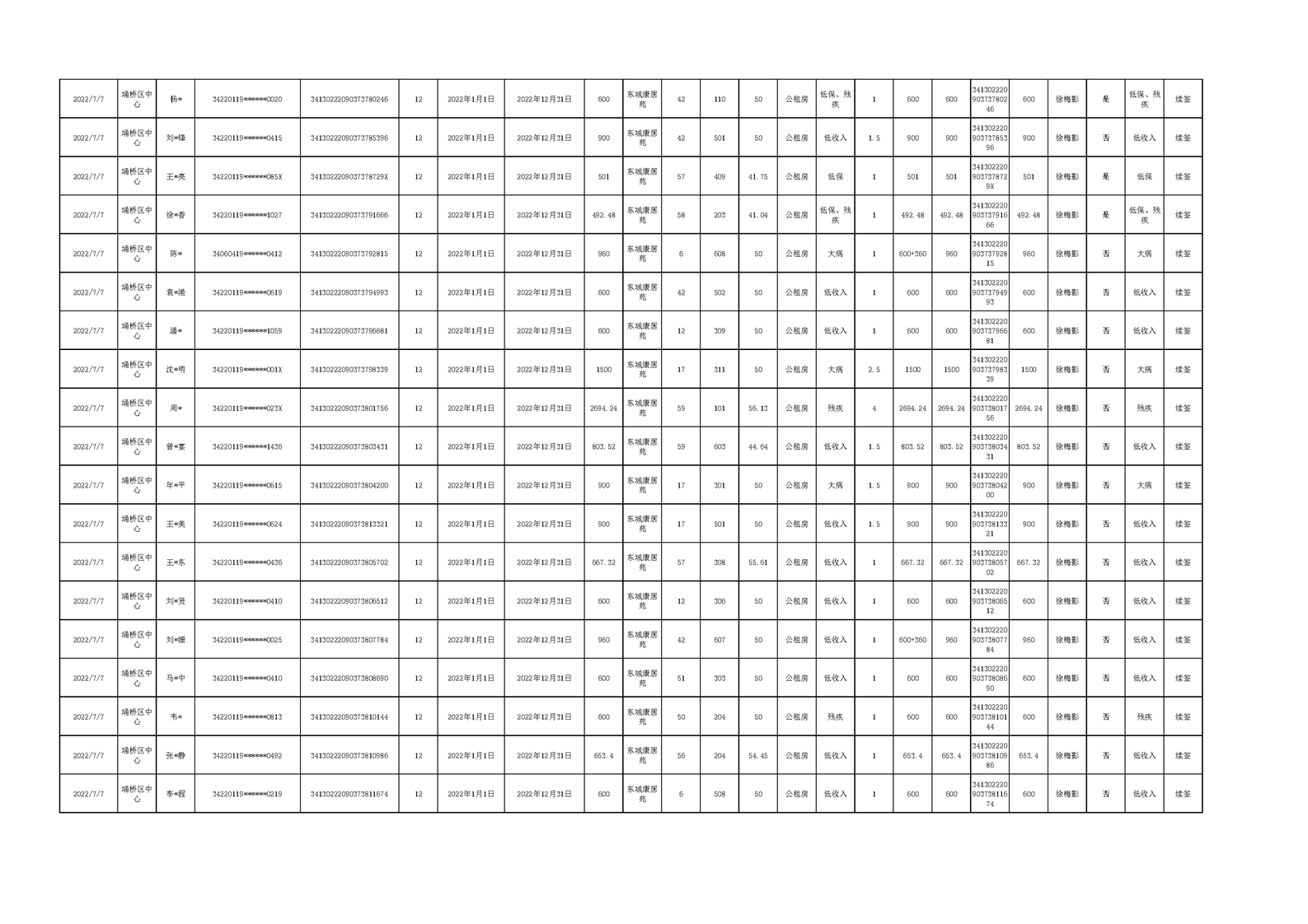 【租金收取】埇桥区2022年三季度保障性住房租金收取信息
