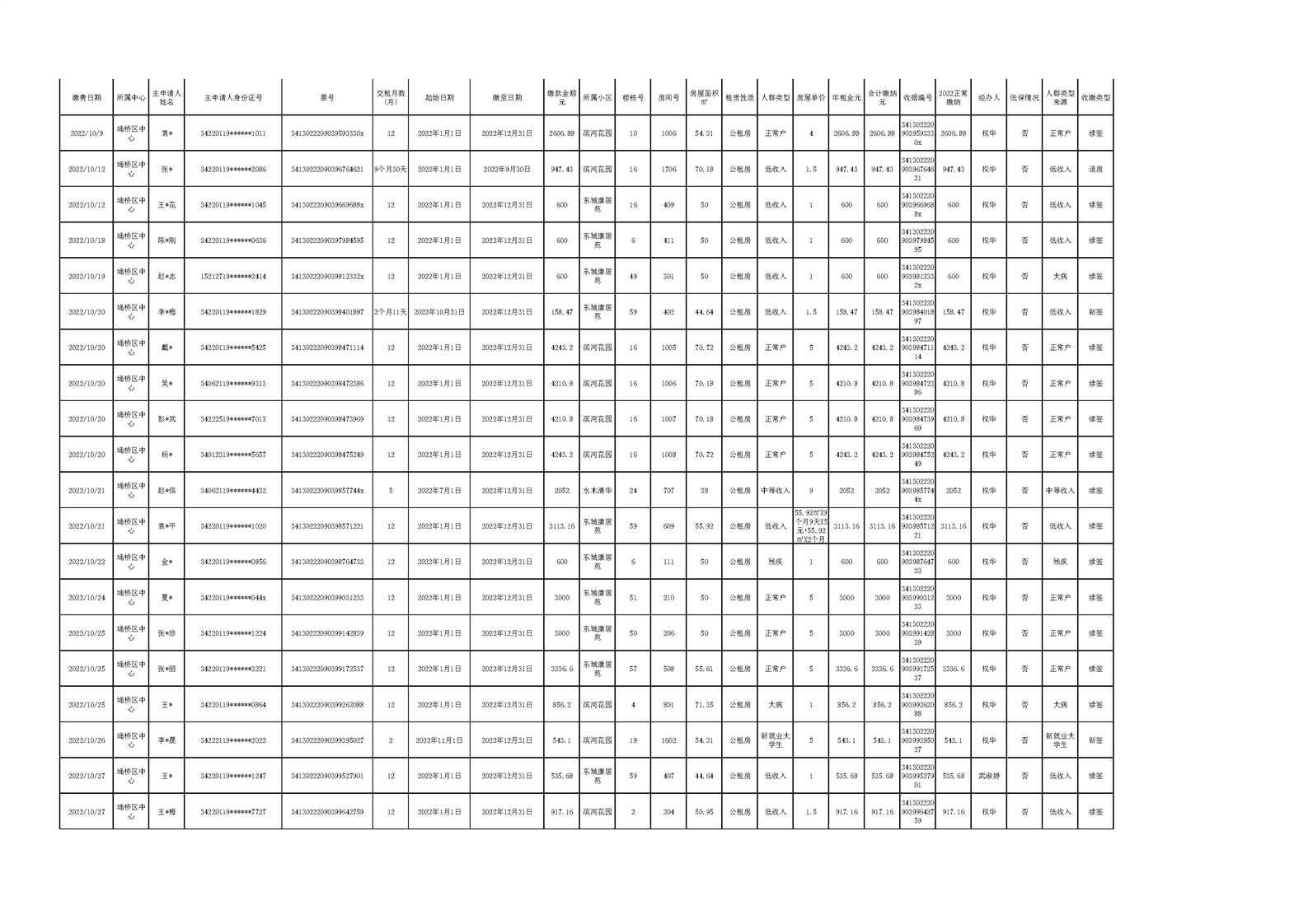【租金收取】埇桥区2022年四季度保障性住房租金收取信息