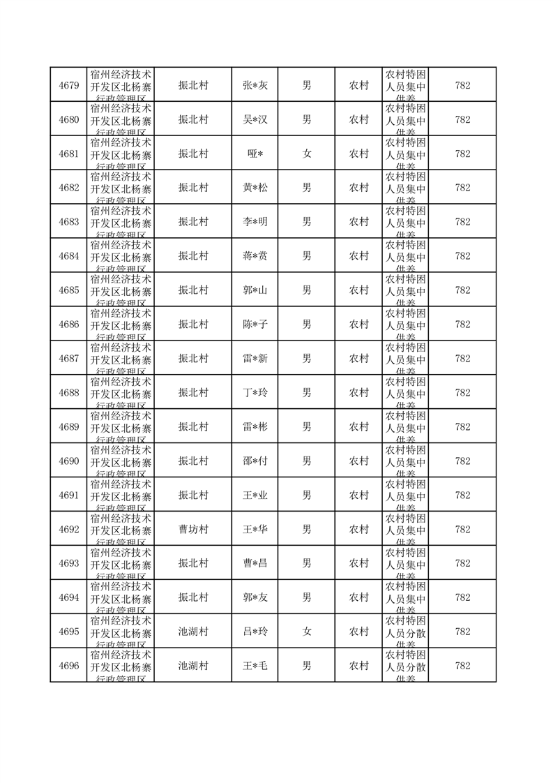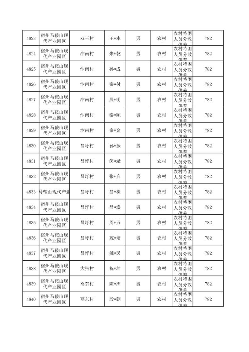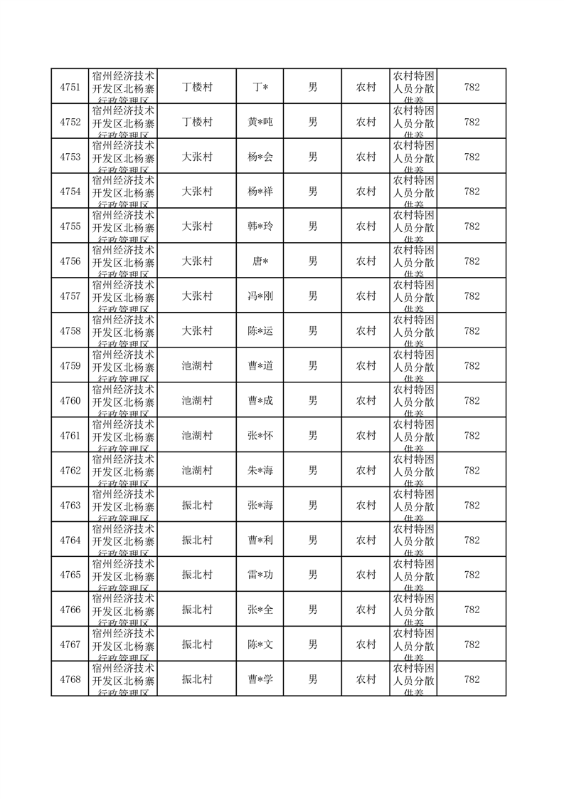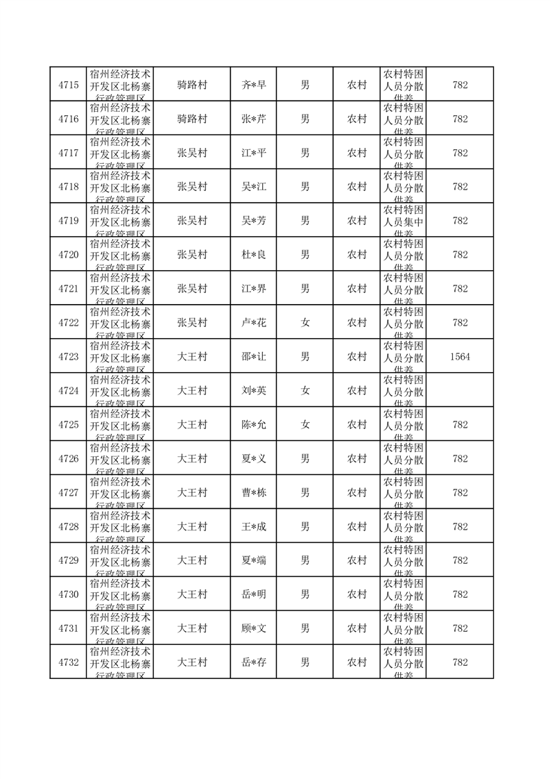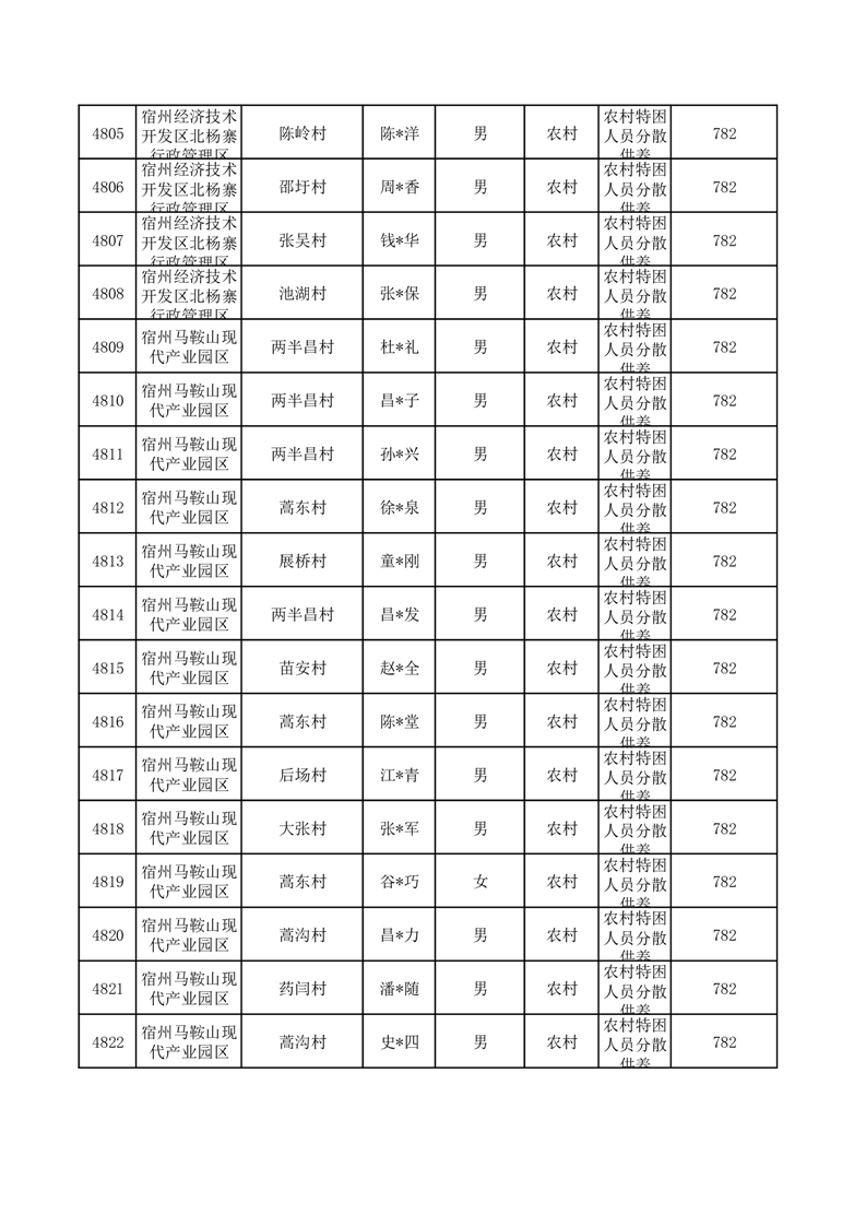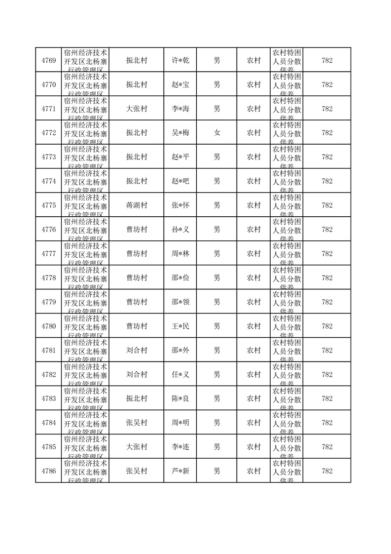 埇桥区2025年10月特困人员名单
