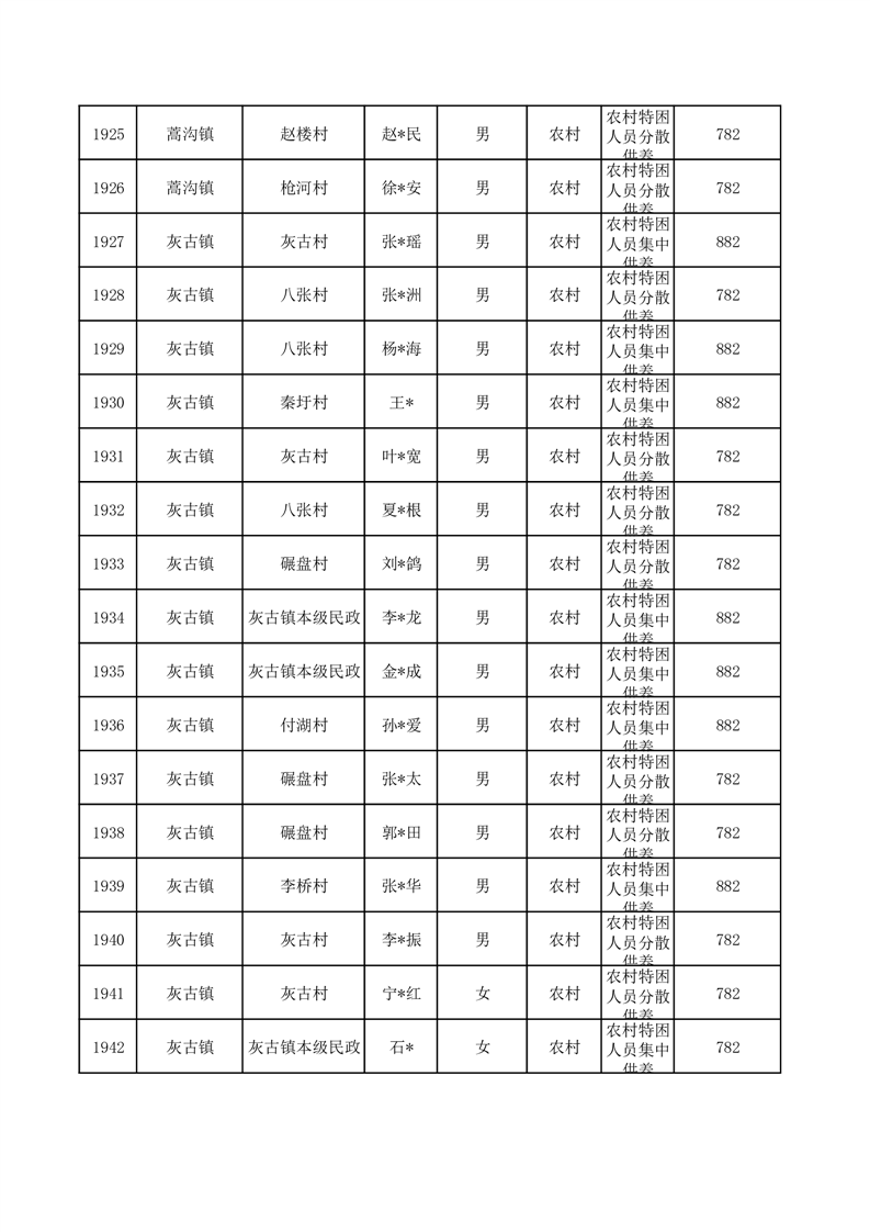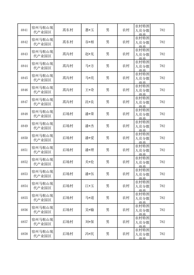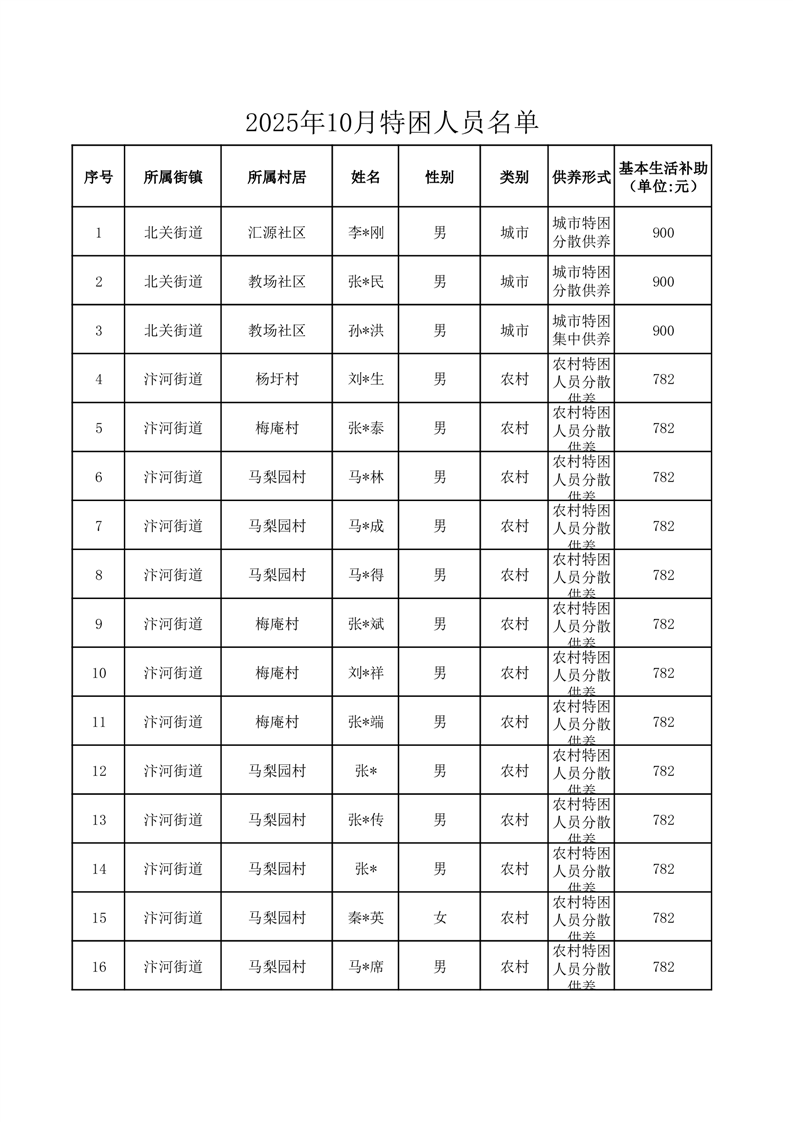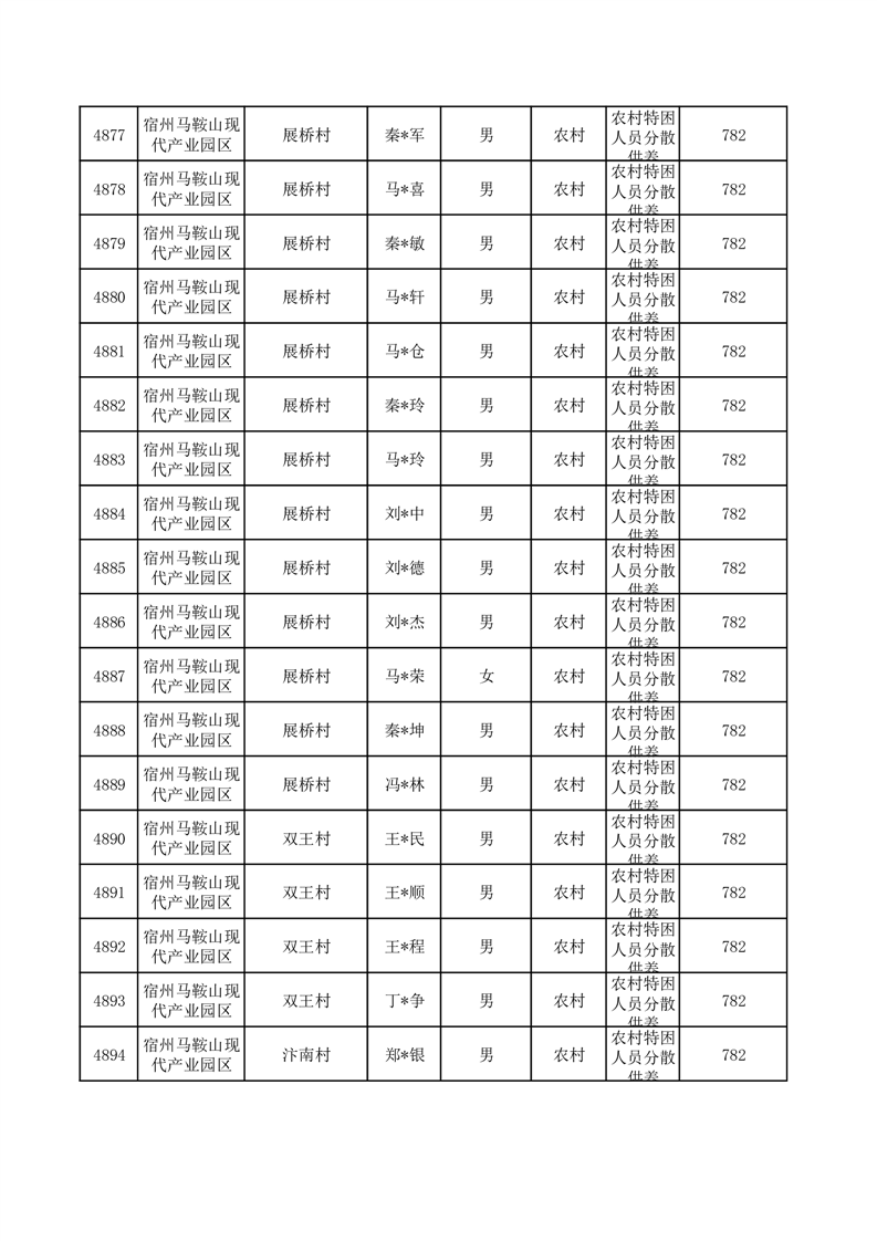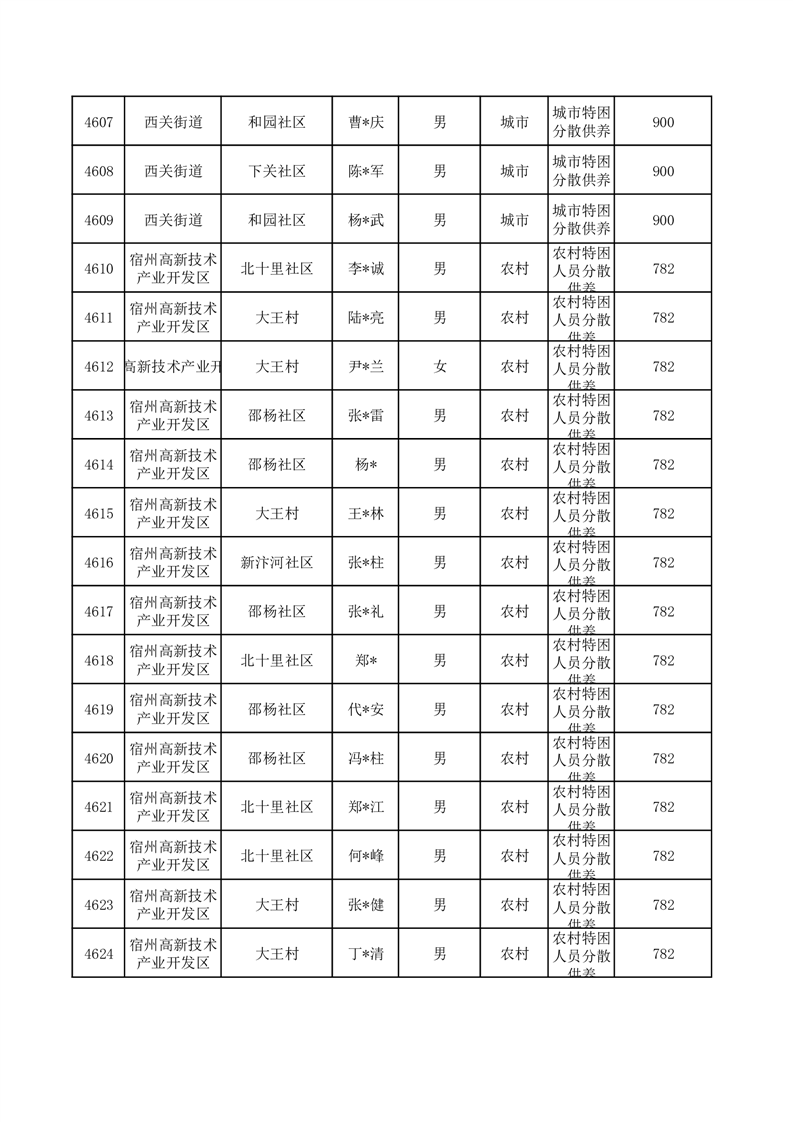 埇桥区2025年10月特困人员名单
