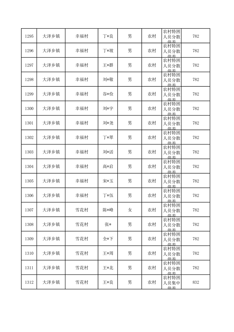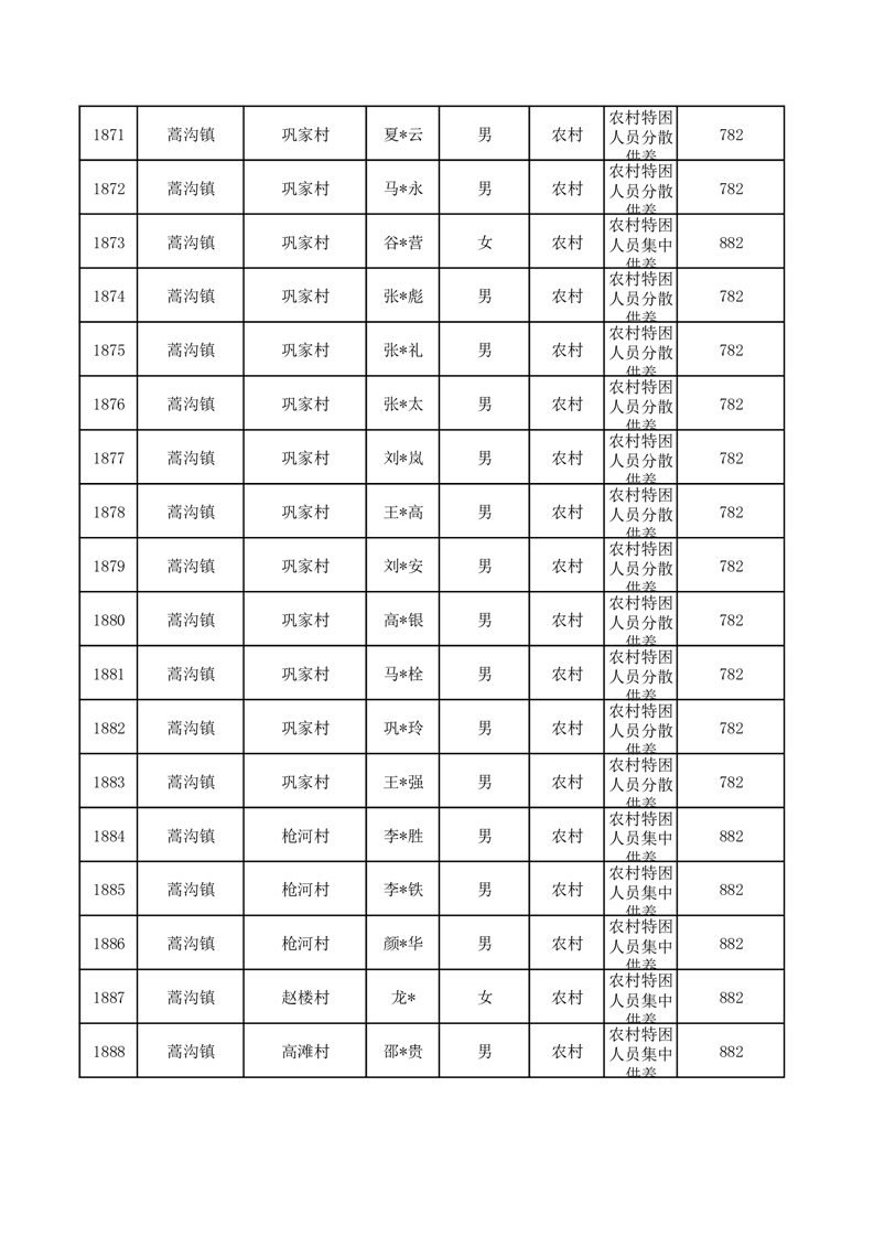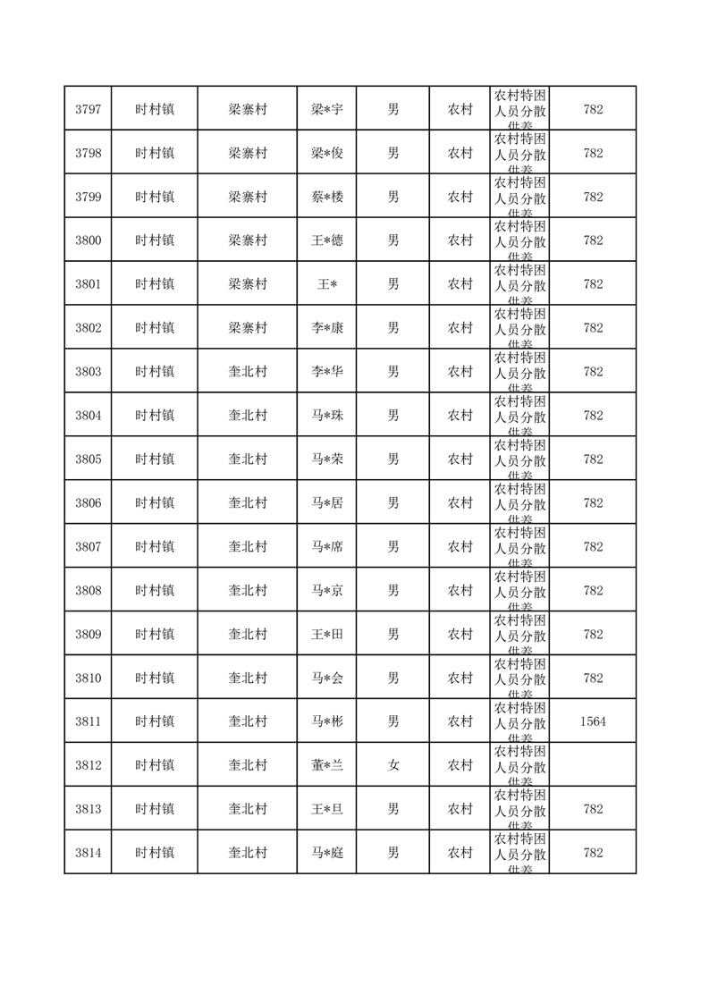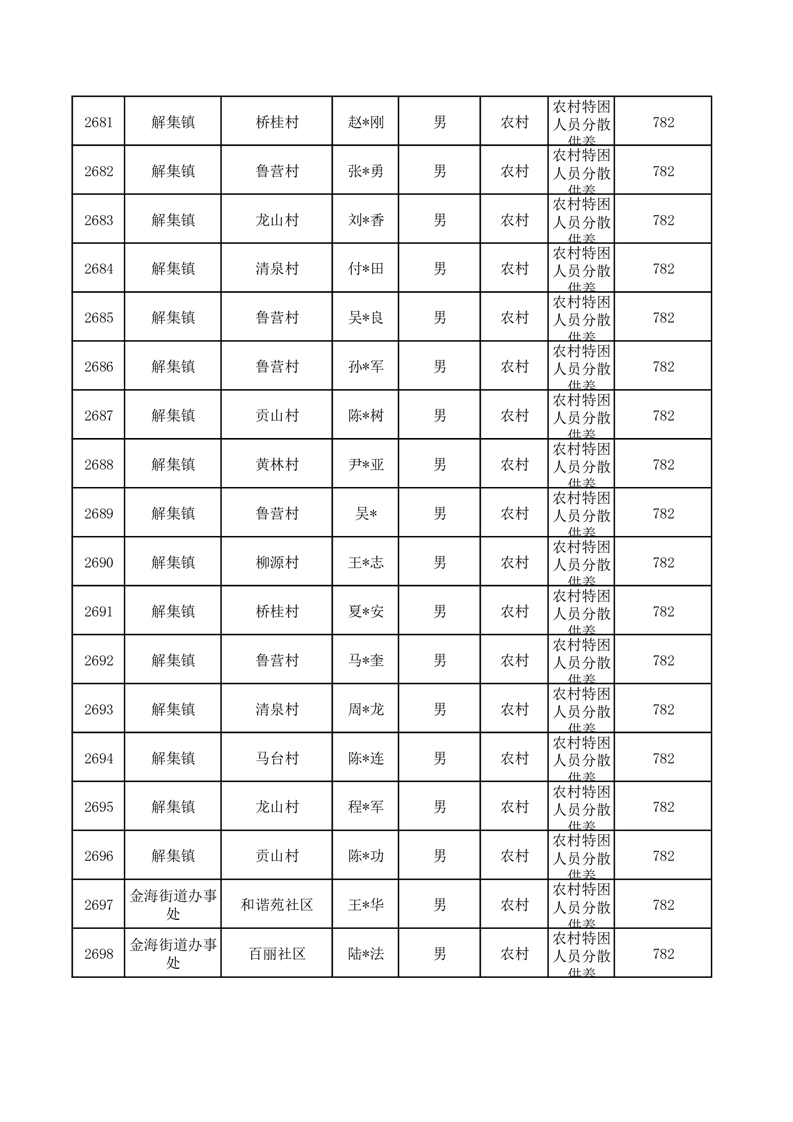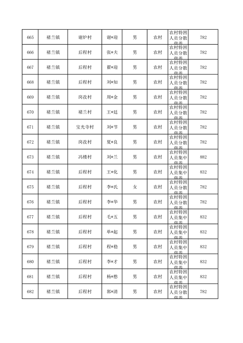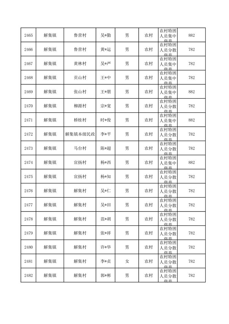 埇桥区2025年10月特困人员名单