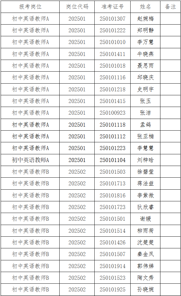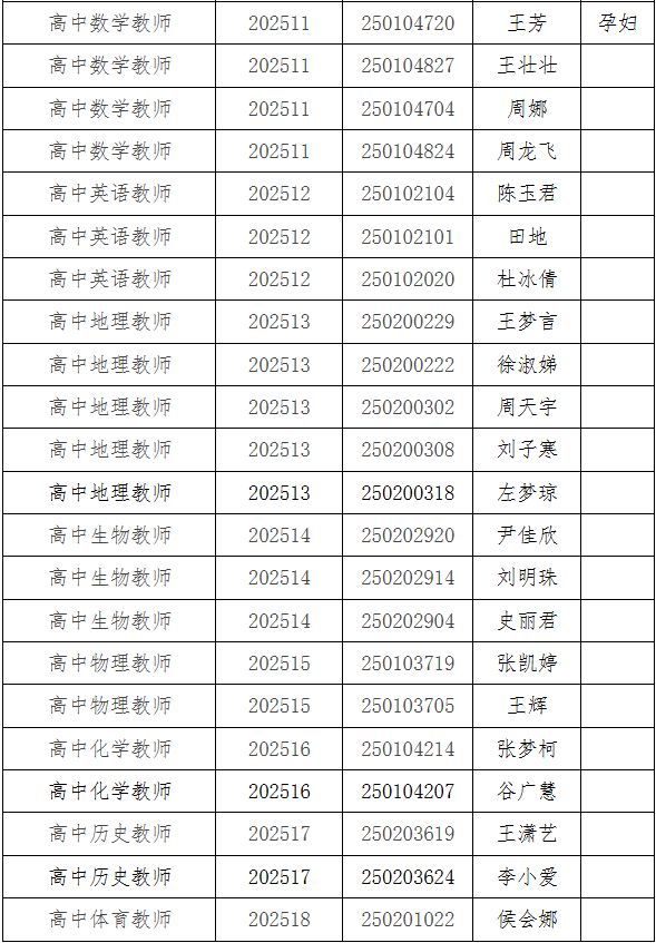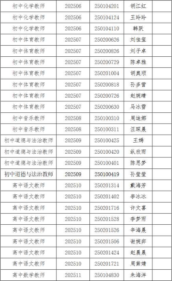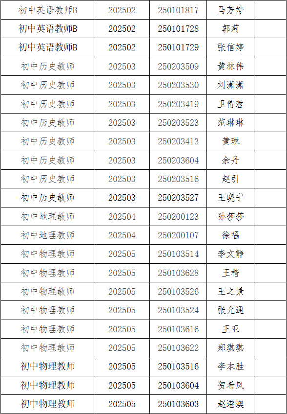 根据《2025年度宿州市埇桥区中学新任教师公开招聘公告》现将2025年度宿州市埇桥区中学新任教师公开招聘拟聘人员公示如下: