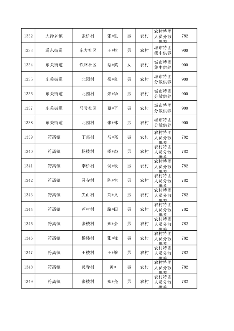 埇桥区2026年3月特困人员名单