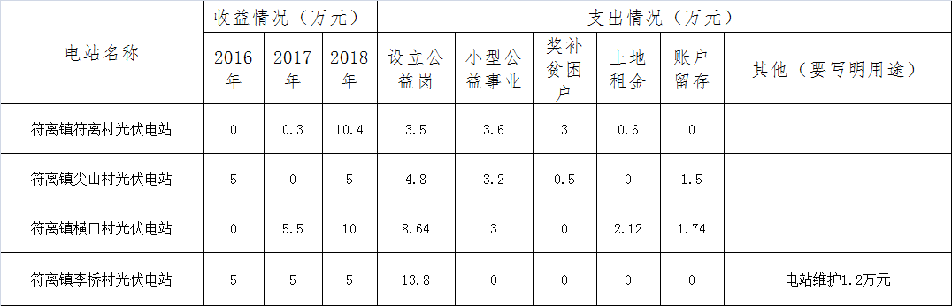 【资产收益】符离镇村级光伏扶贫电站收益支出情况统计表