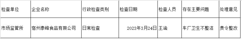 【监督检查】符离镇2023年第一季度食品生产经营监督检查信息表