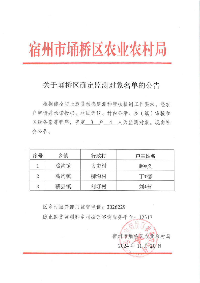 关于埇桥区确定监测对象名单的公告