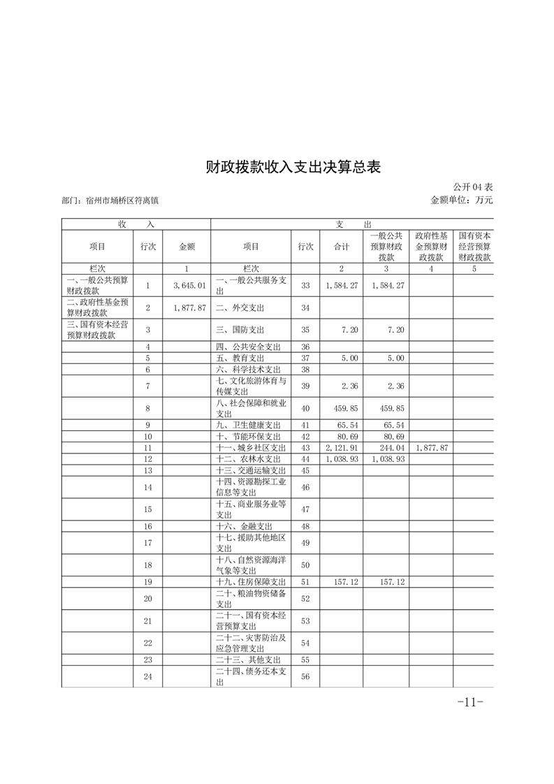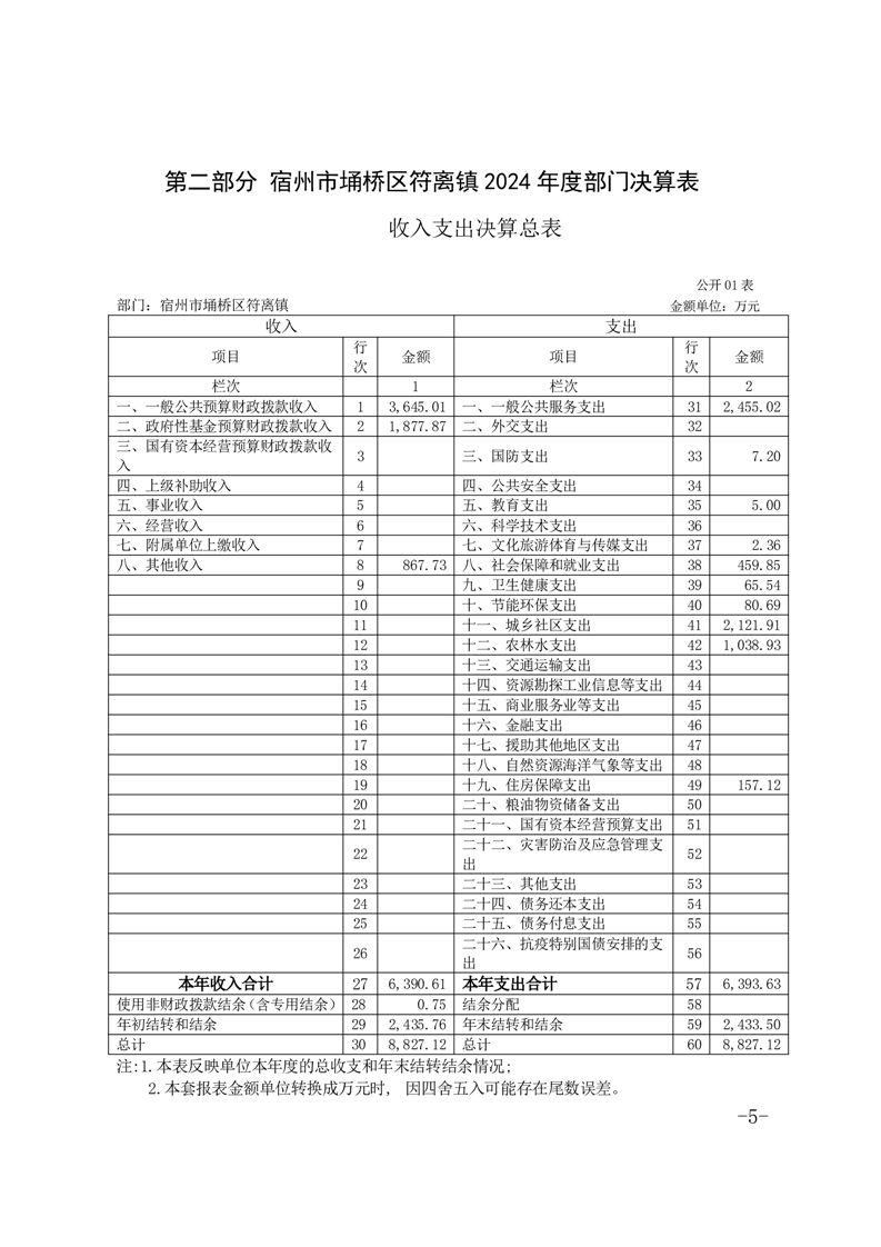 名  称: 2024年度宿州市埇桥区符离镇人民政府部门决算公开