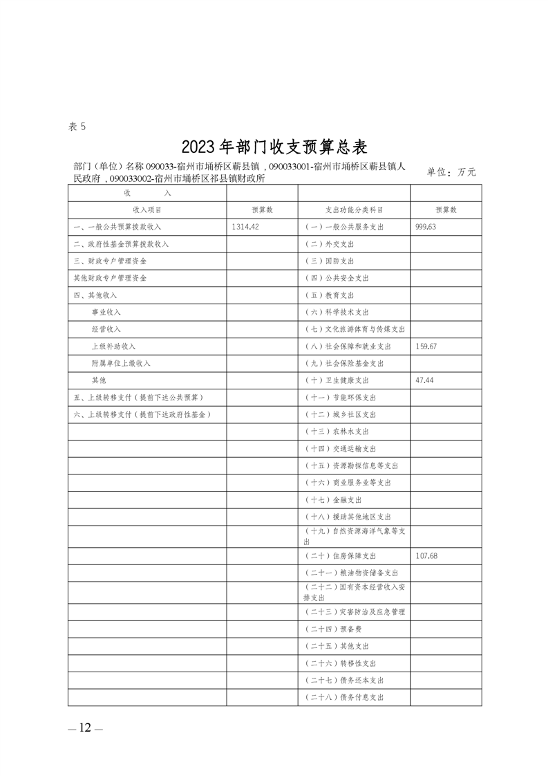 埇桥区蕲县镇2023年部门预算