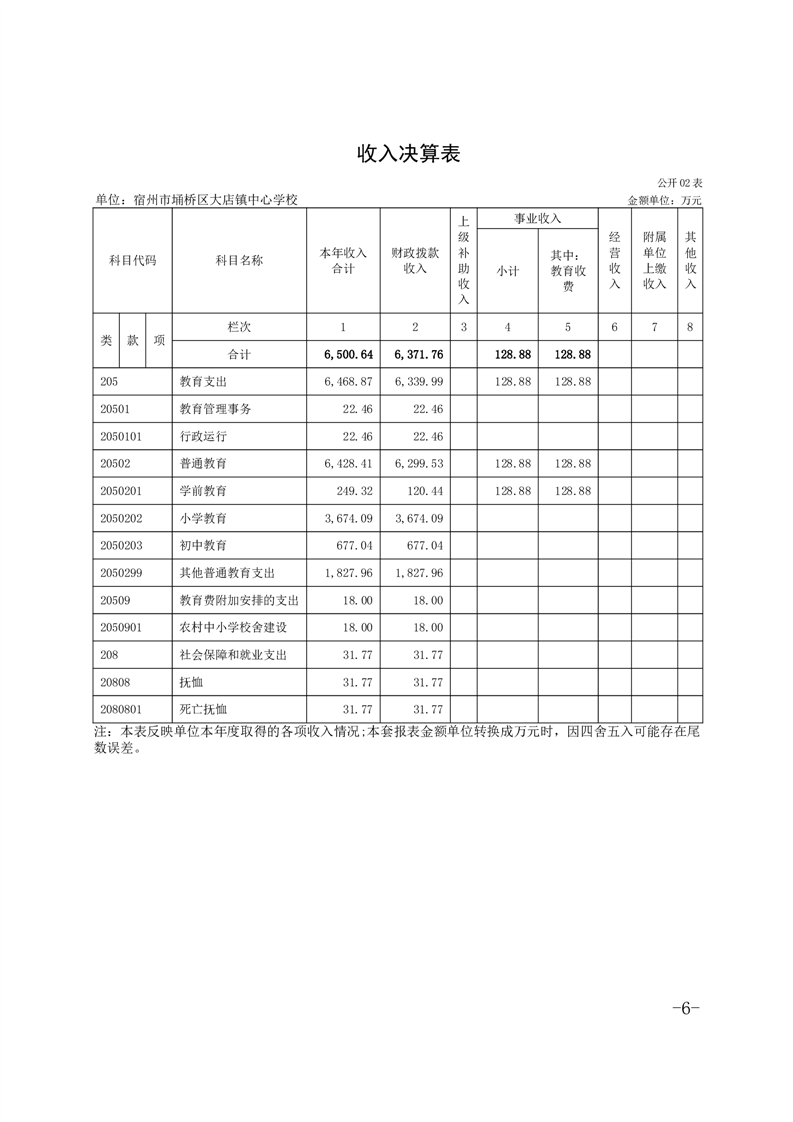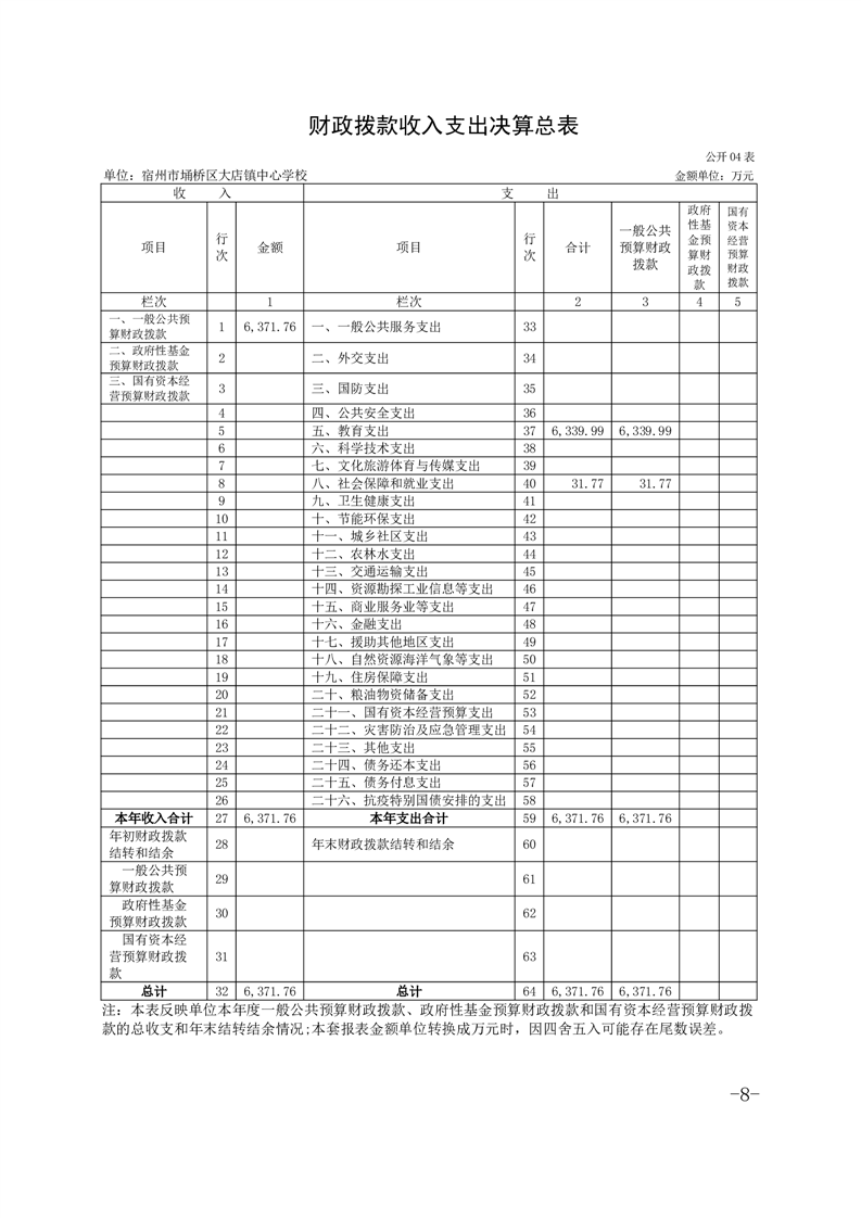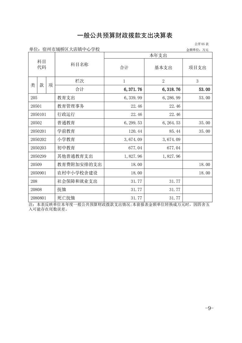 宿州市埇桥区大店镇中心学校2024年度单位决算