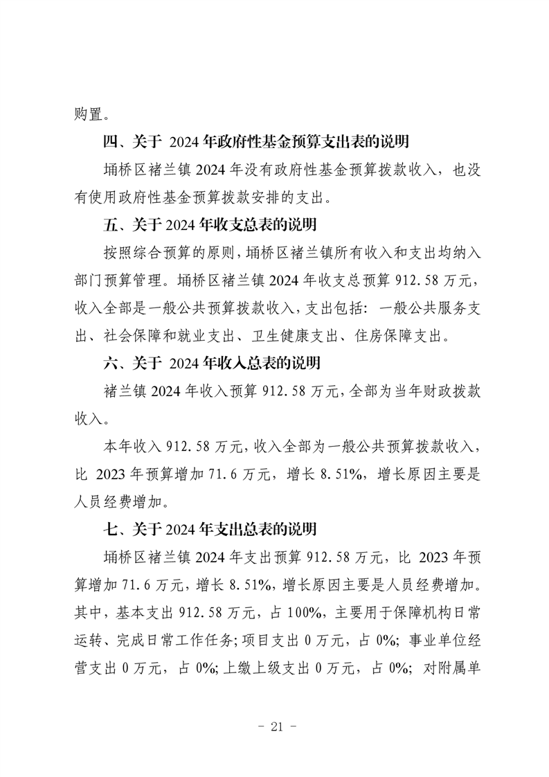 埇桥区褚兰镇2024年部门预算及说明