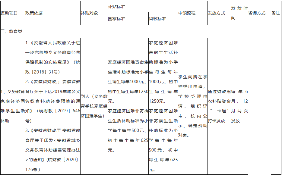 【学生资助政策】埇桥区学生资助相关政策(包括政策依据、补贴对象、补贴标准等)