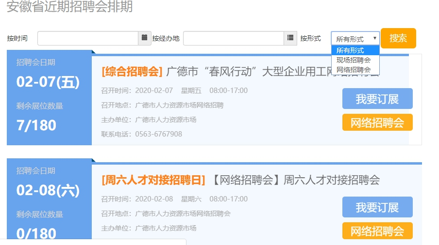 点击网站首页“招聘会”可查询近期全省各类招聘会情况