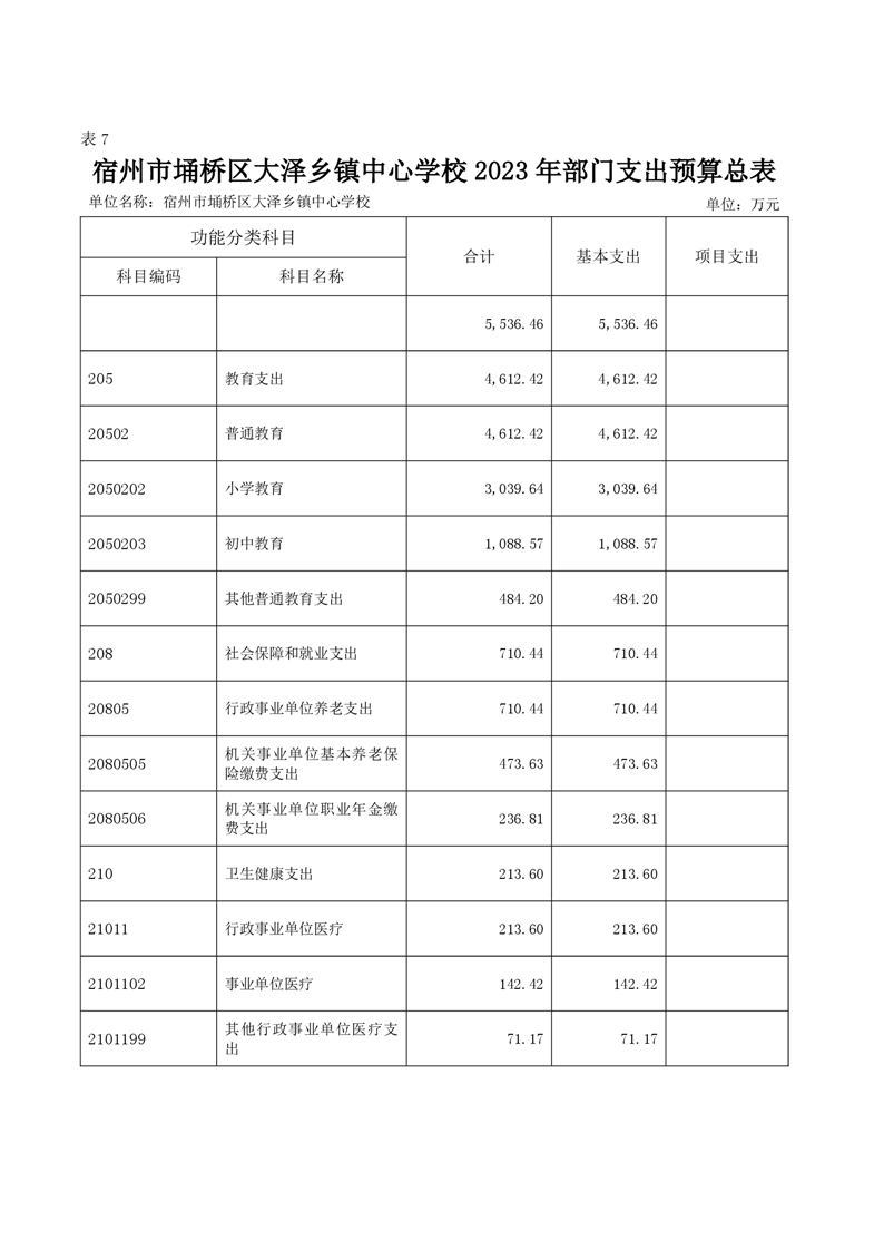 【学校经费预算】2023大泽乡镇中心校部门预算表