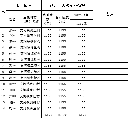 支河镇2025年1月孤儿救助花名册