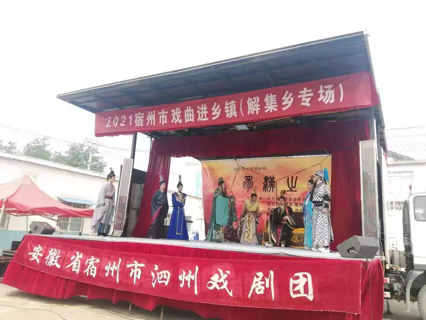 2021年6月4日,安徽省宿州市泗州戏剧团来到解集乡文化广场开展戏曲进乡镇活动,十余名戏曲名家给解集乡村民表演了精彩动人的戏曲。