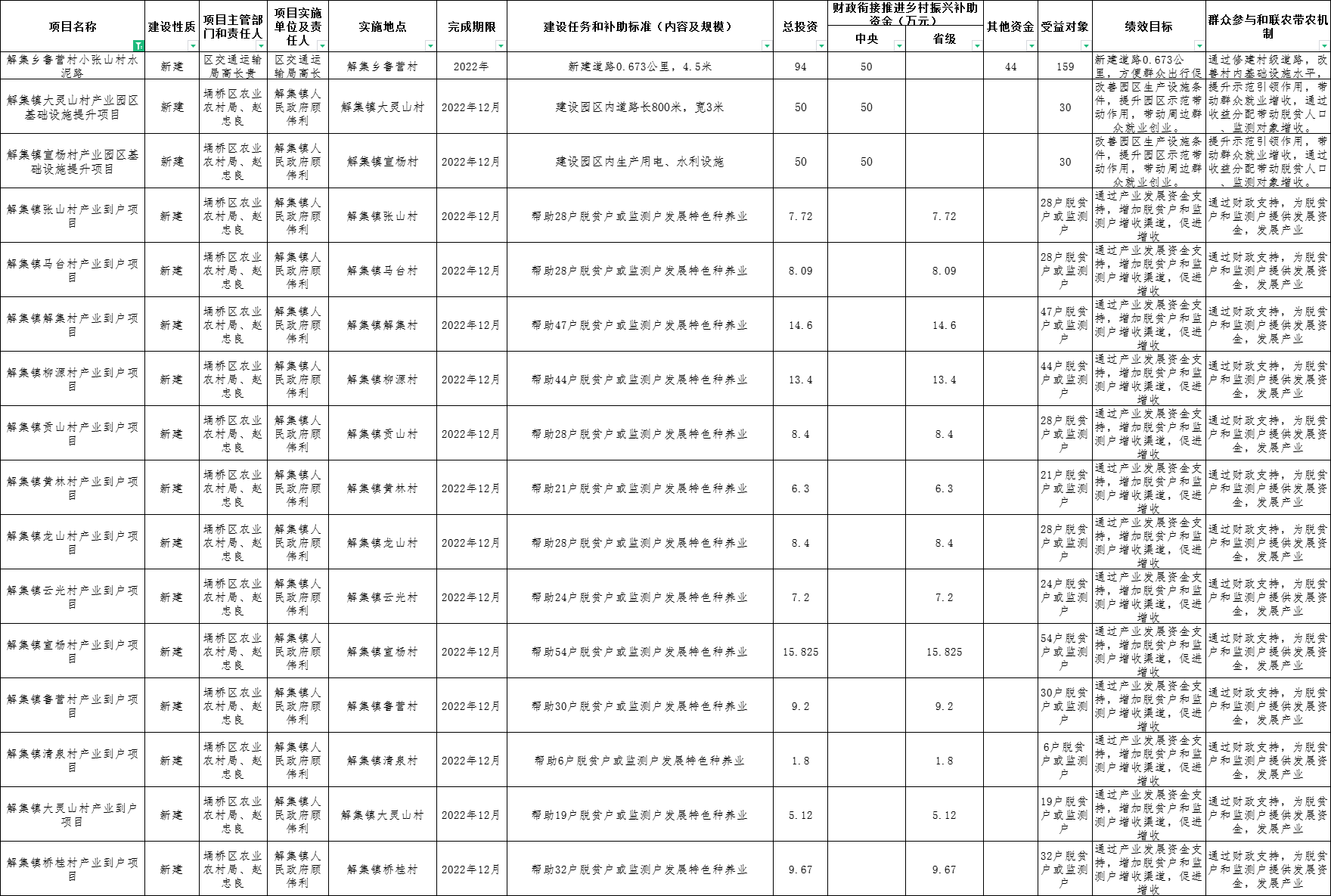 埇桥区2022年提前下达中央和省级财政衔接推进乡村振兴补助资金项目表