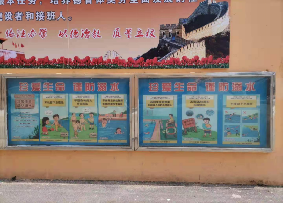 三是宣传到位。学校充分利用升旗仪式、主题班会、宣传栏、 电子屏、条幅采用图文并茂的形式, 加强对学生安全提醒,切实落实每周放学前对学生进行防溺水安全提醒。