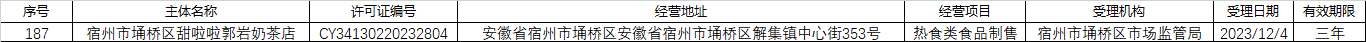 埇桥区解集镇市场监督管理所2023年第四季度小餐饮、食品摊贩备案信息公示