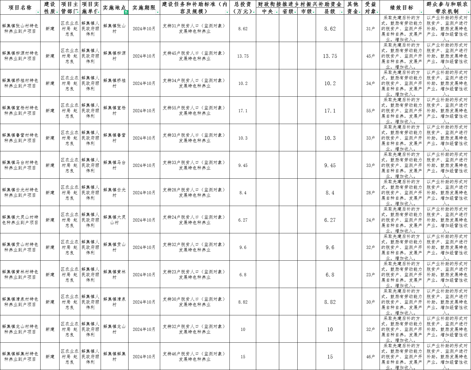 埇桥区解集镇2024年项目年度计划