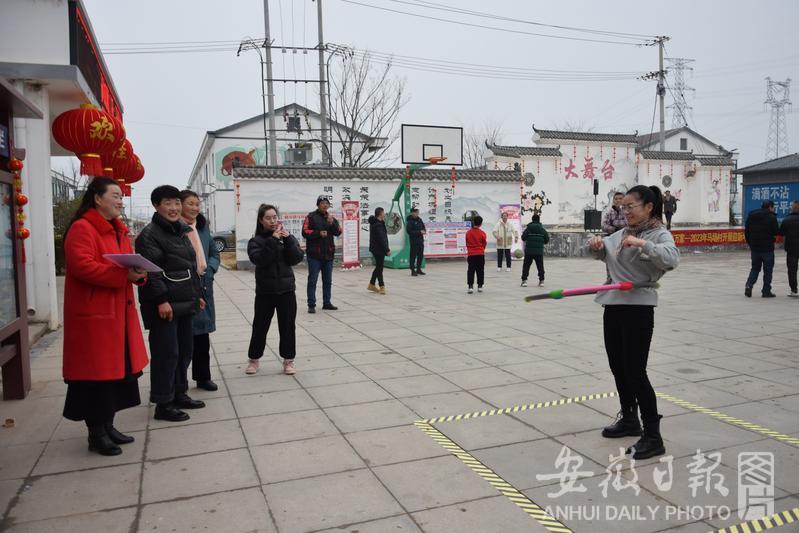 1月22日,大年初一,宿州市埇桥区顺河镇马场村新时代文明实践广场,村民进行定点投篮比赛,欢度春节。新春佳节到来之际,马场村新时代文明实践站携手村内两家爱心企业,开展了“我们的中国梦”文化进万家庆新春系列文体活动,村民们欢聚在一起,通过歌舞、戏曲、猜灯谜、乒乓球、定点投篮、跳绳、呼啦圈等系列文体活动,营造出浓浓的年味,欢度春节。