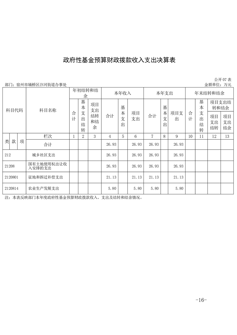 【部门决算】宿州市埇桥区汴河街道2024年度部门决算