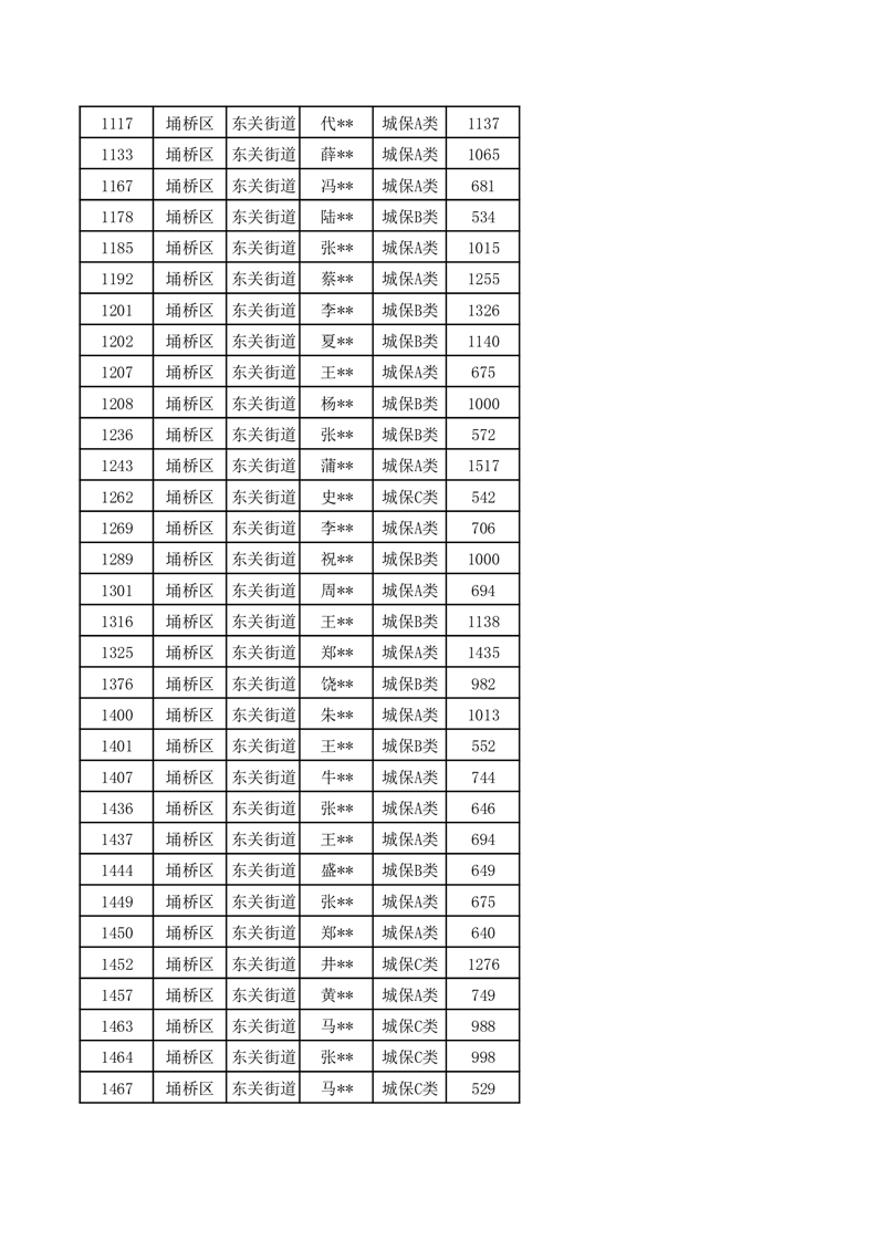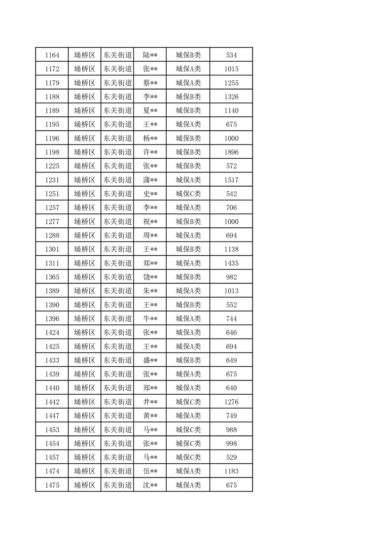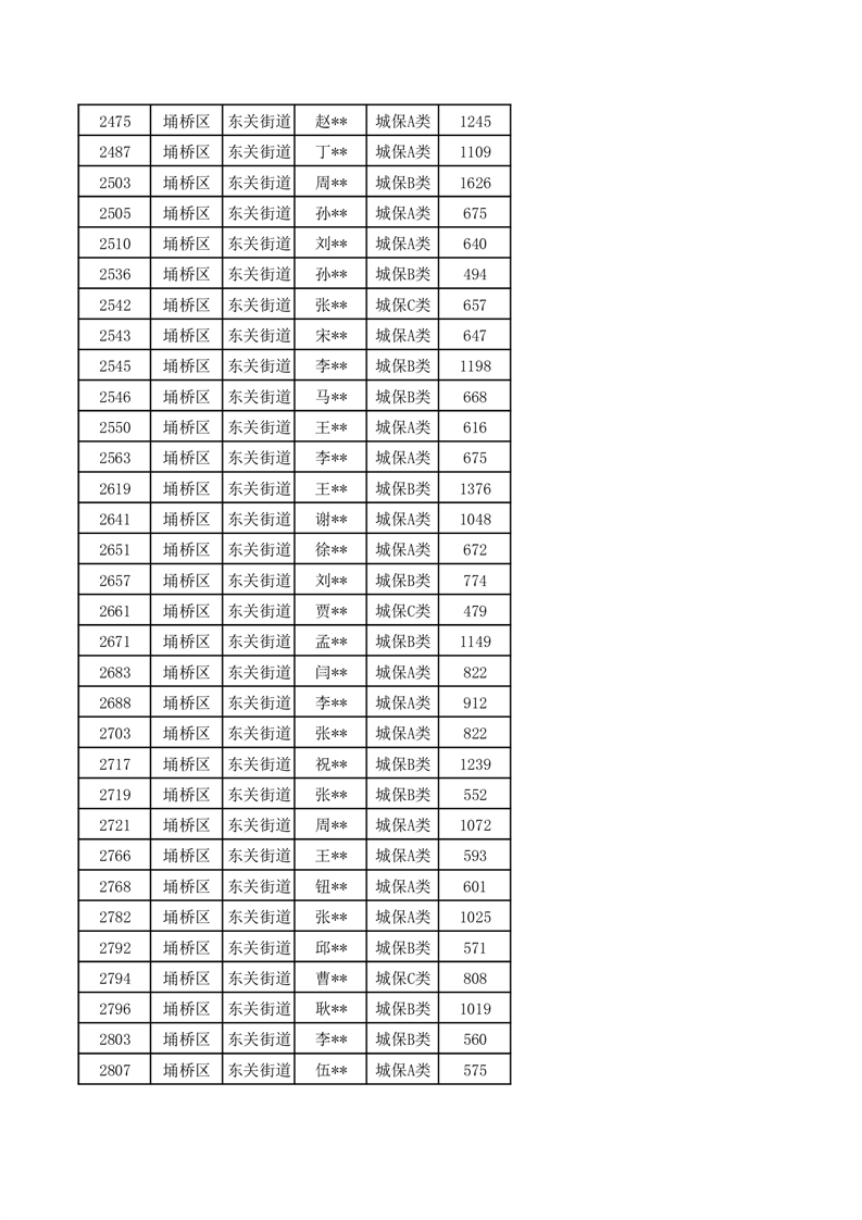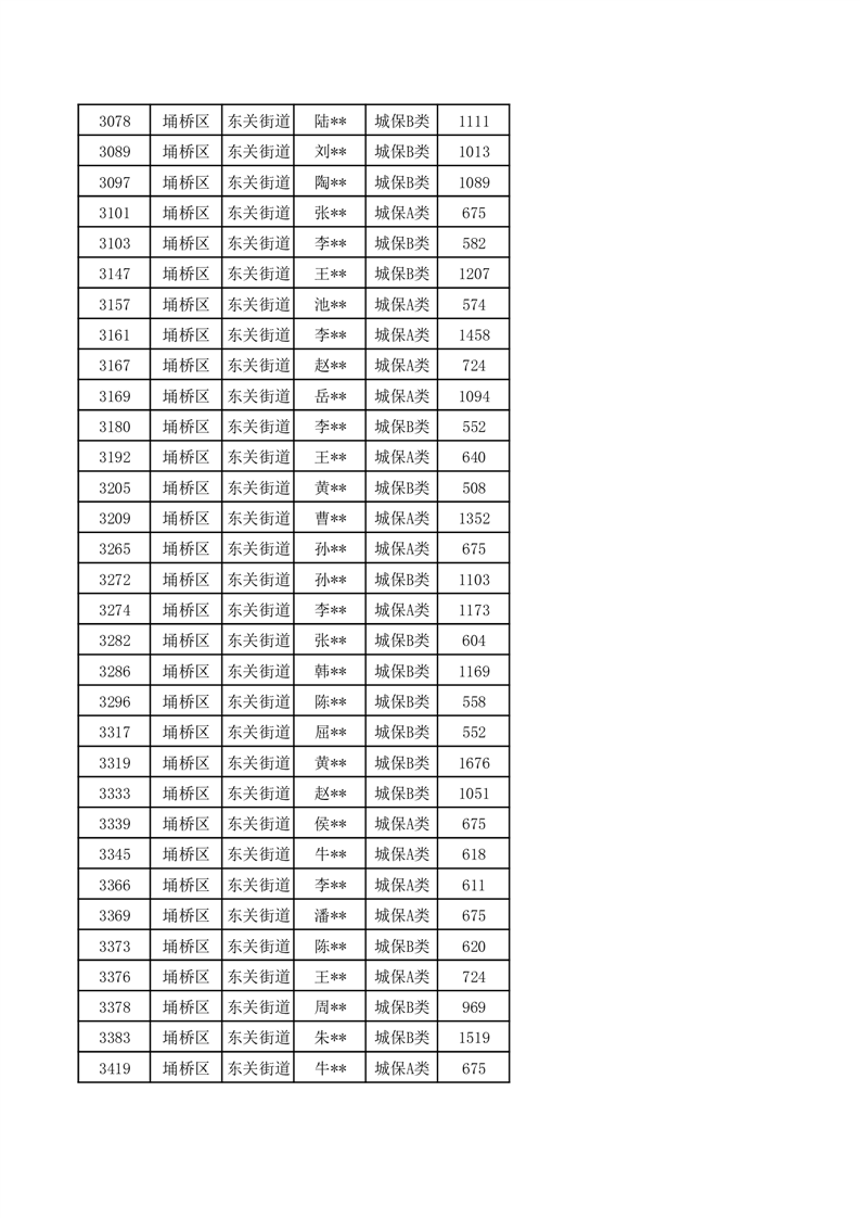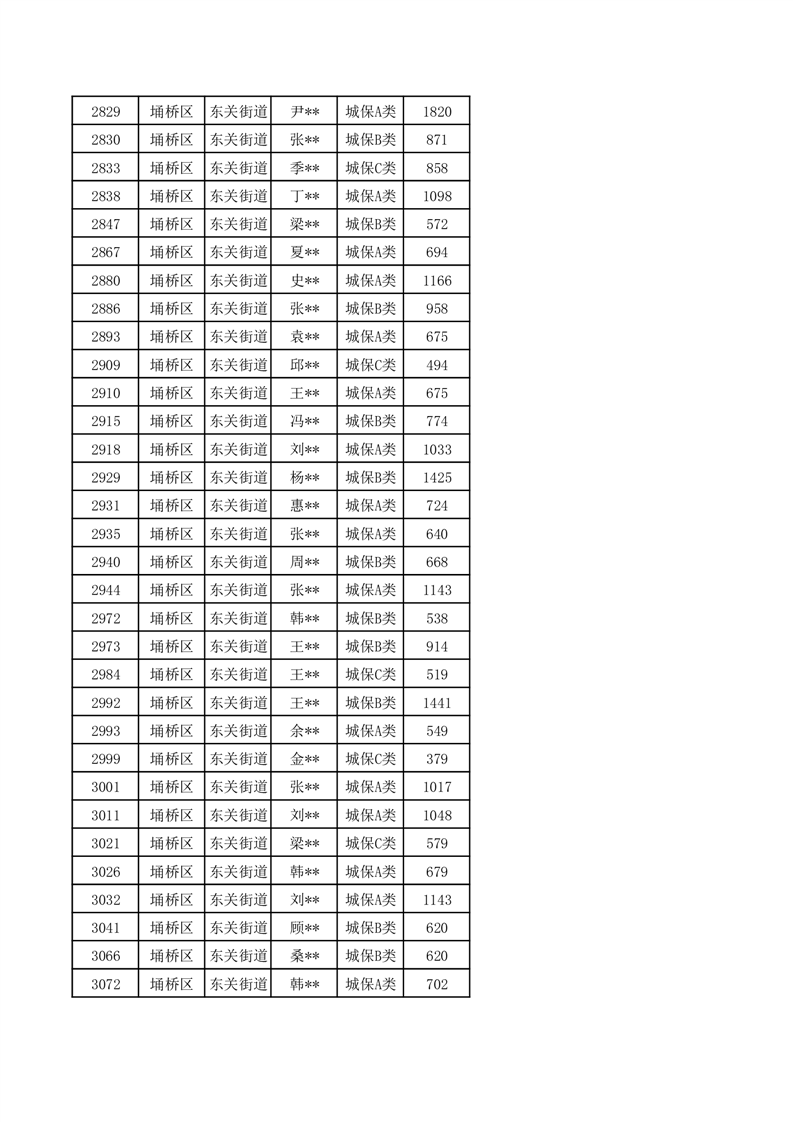 【城乡低保】东关街道2024年第三季度城乡低保发放花名册