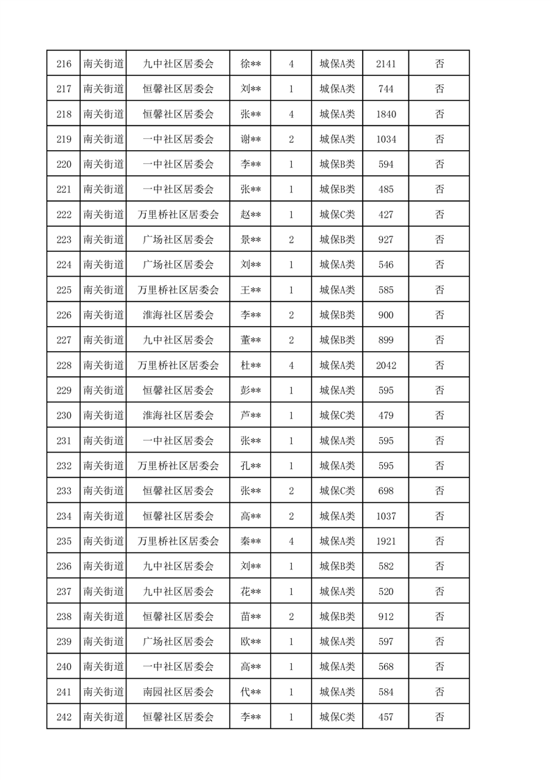南关街道2025年3月低保资金花名册