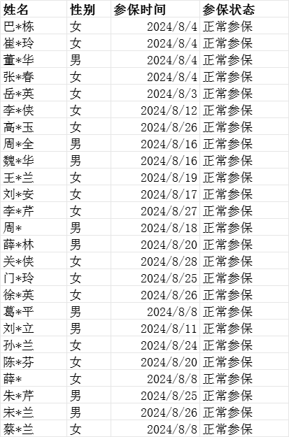 西关街道2024年8月城乡居民养老保险花名册-社保所
