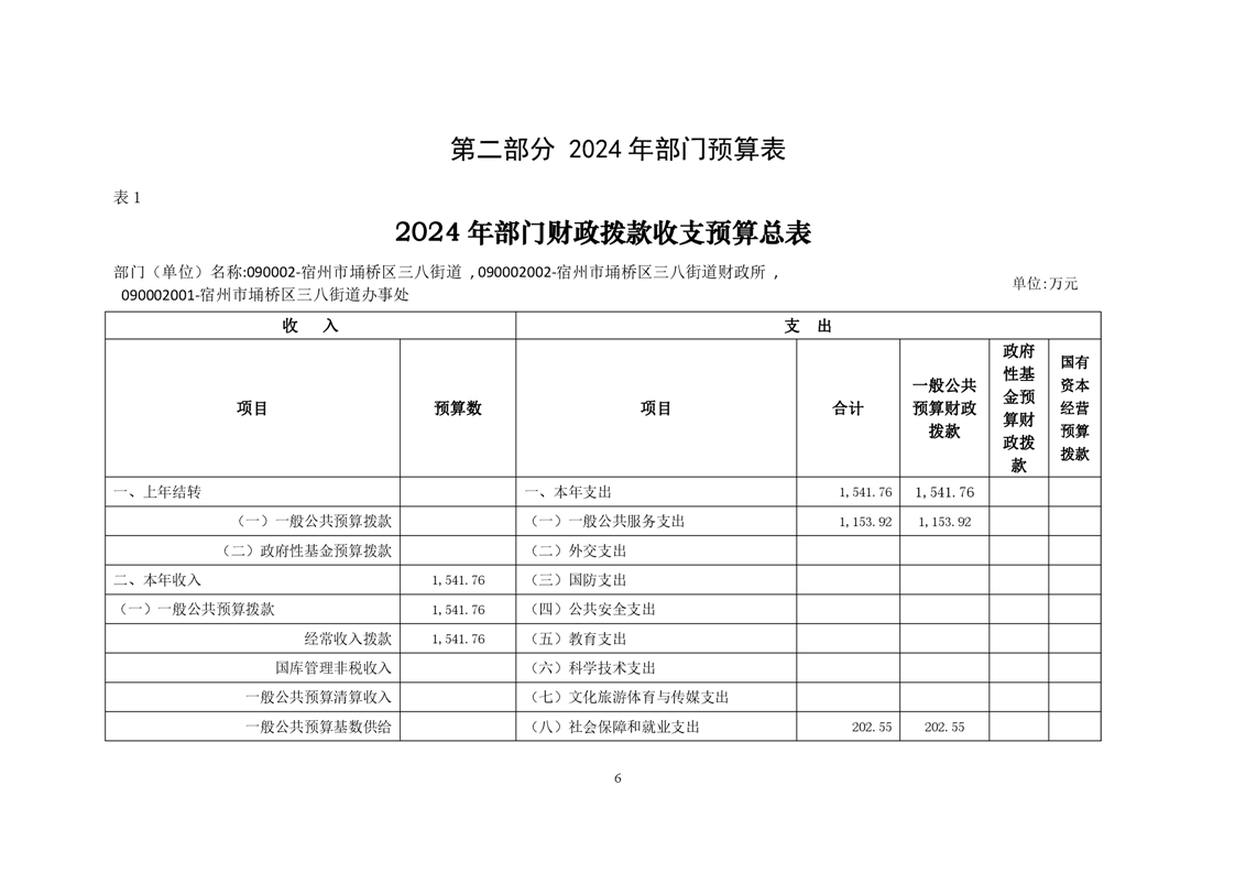 宿州市埇桥区三八办事处2024年财政预算公开