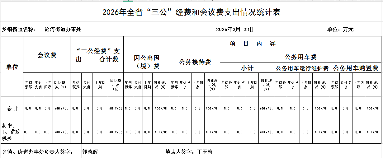 沱河街道办事处2026年2月“三公”经费统计表