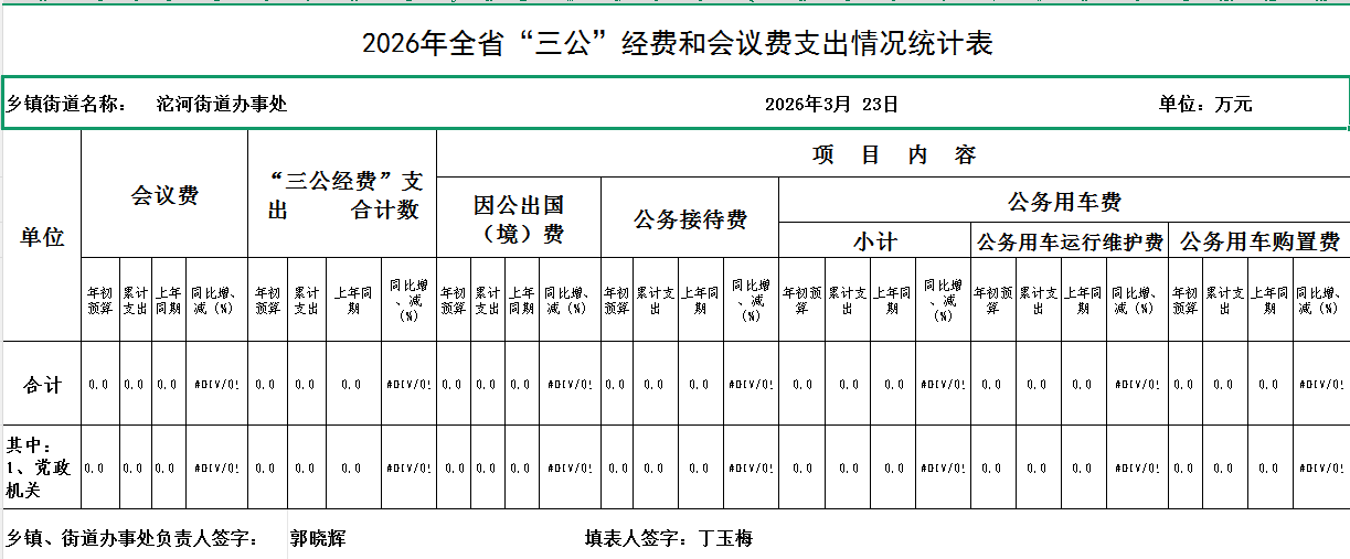沱河街道办事处2026年3月“三公”经费统计表