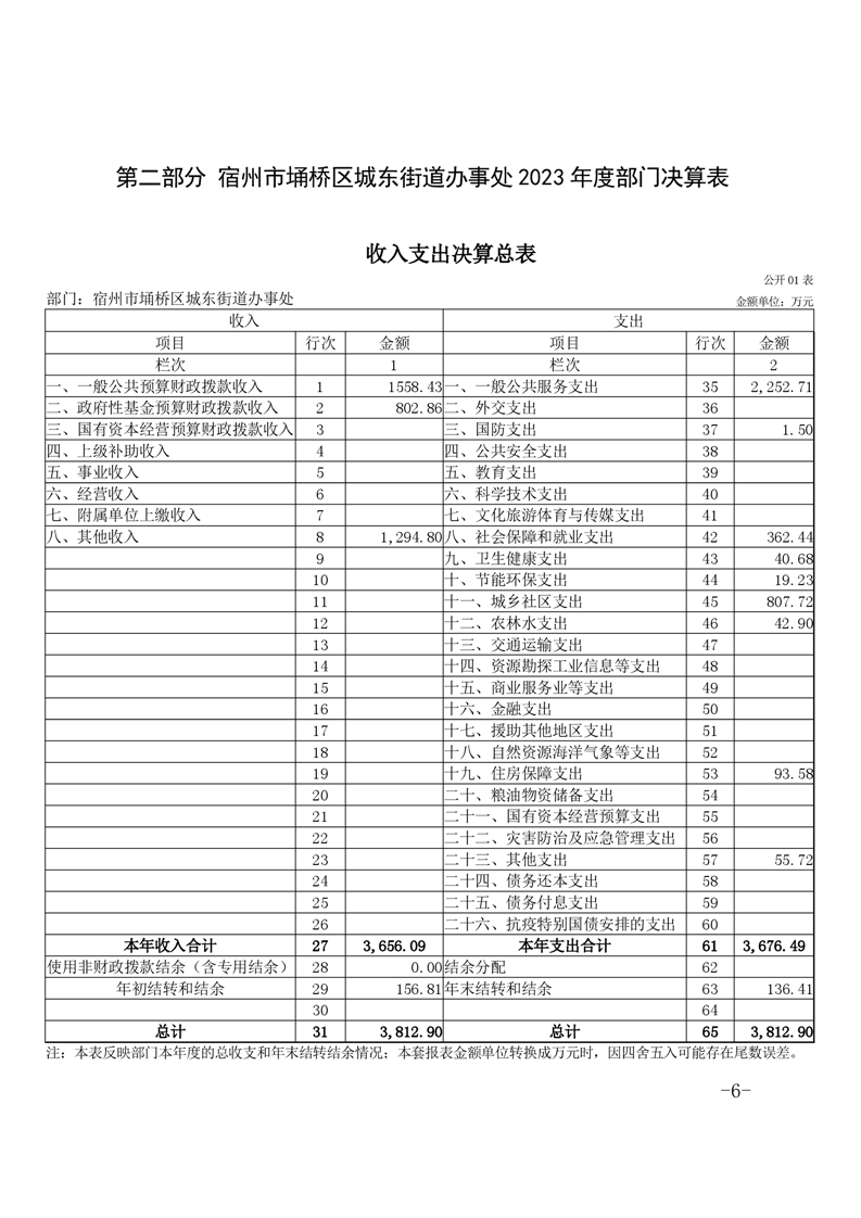 宿州市埇桥区城东街道办事处2023年度部门决算