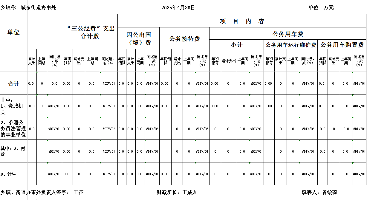 城东街道2025年4月“三公”经费全口径支出情况统计表
