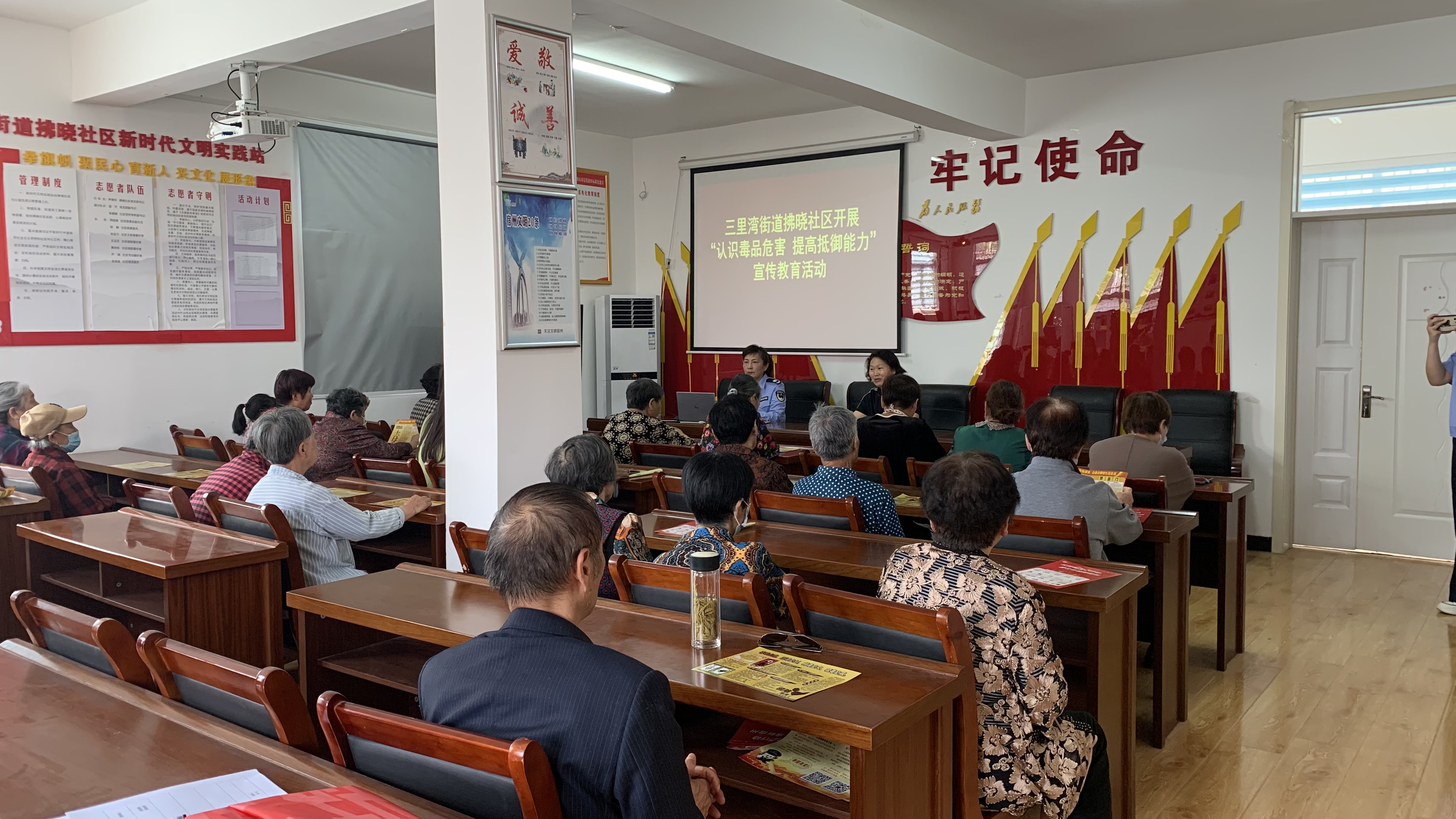 近日,三里湾司法所走进拂晓社区开展以“认识毒品危害 提高抵御能力”为主题的禁毒宣传活动。