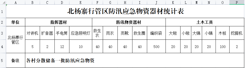 北杨寨行管区防汛器材储备