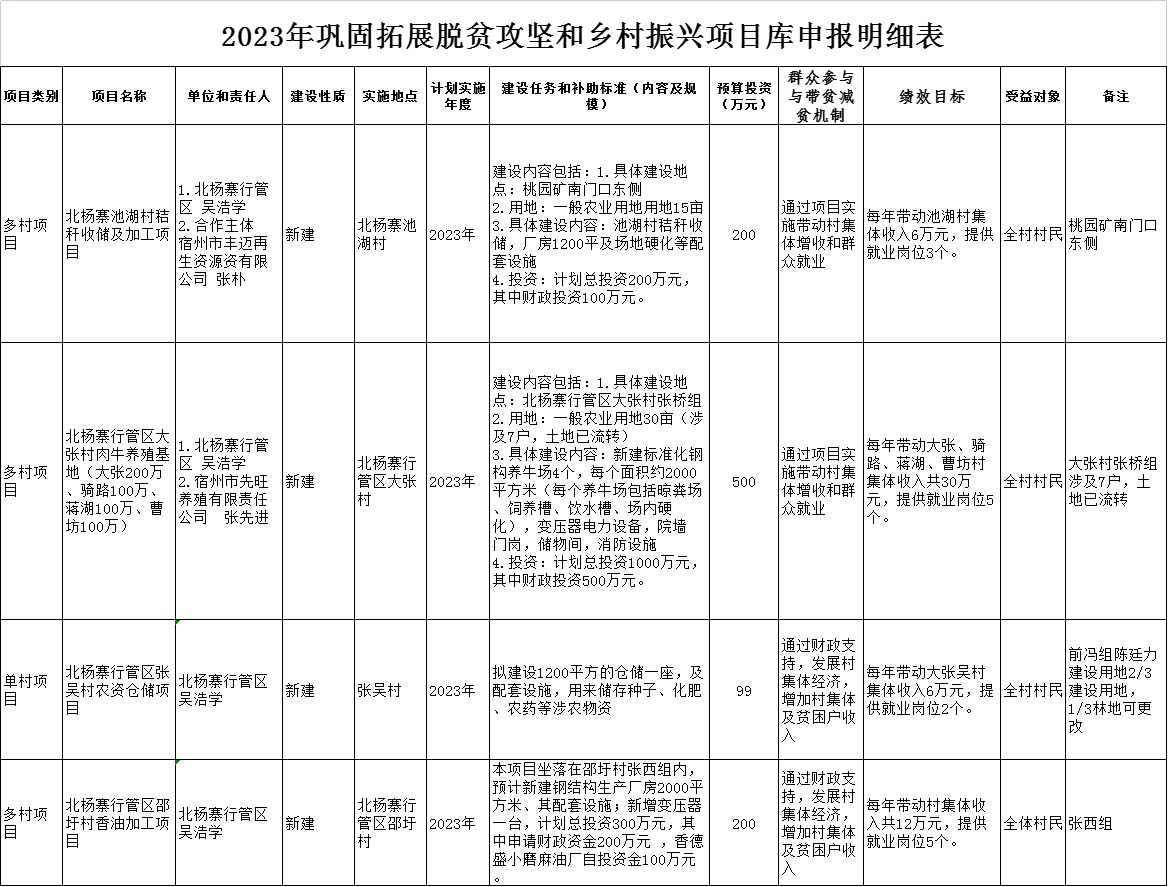 北杨寨行管区2023年巩固拓展脱贫攻坚和乡村振兴项目库申报明细表(一)