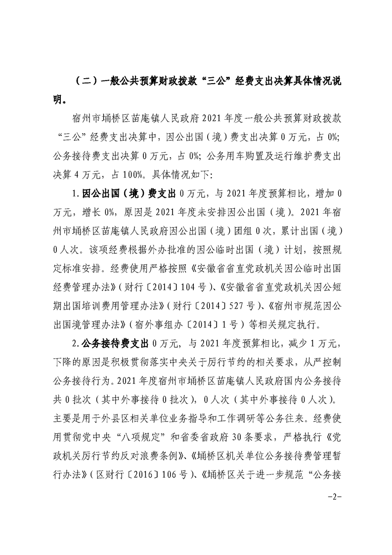 宿州市埇桥区苗庵镇人民政府2021年度一般公共预算财政拨款“三公”经费支出决算情况