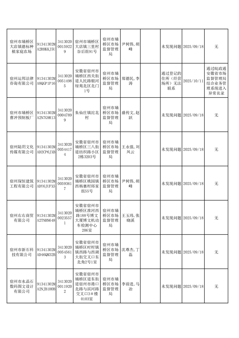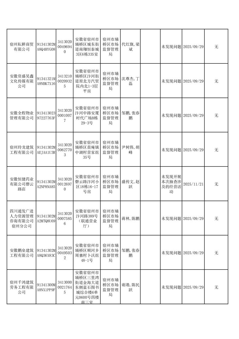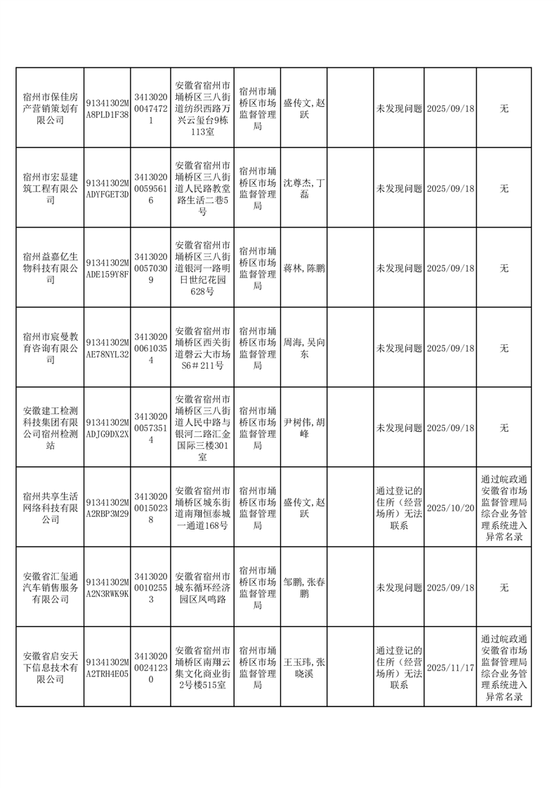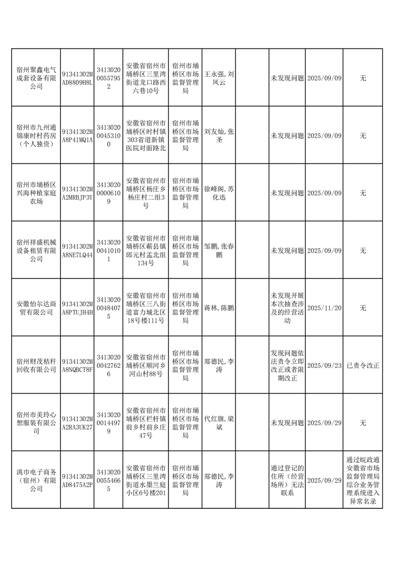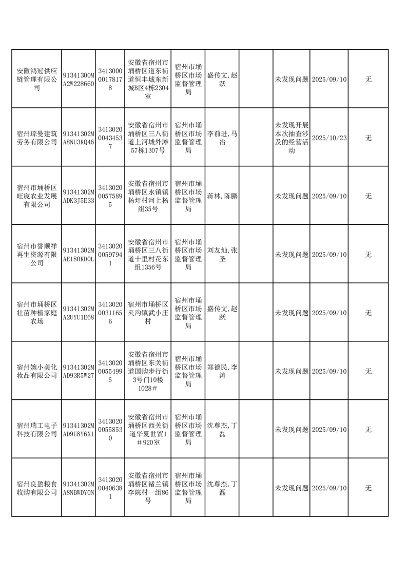 | 名称: | 宿州市埇桥区市场监督管理局2025年全区市场监督管理部门不定向企业抽取计划(检查结果) | ||