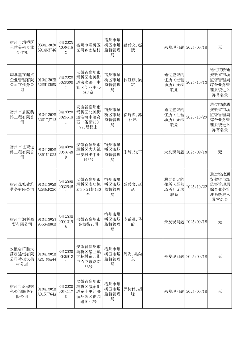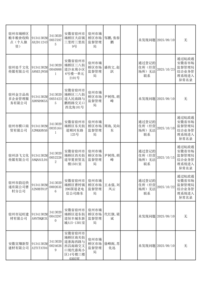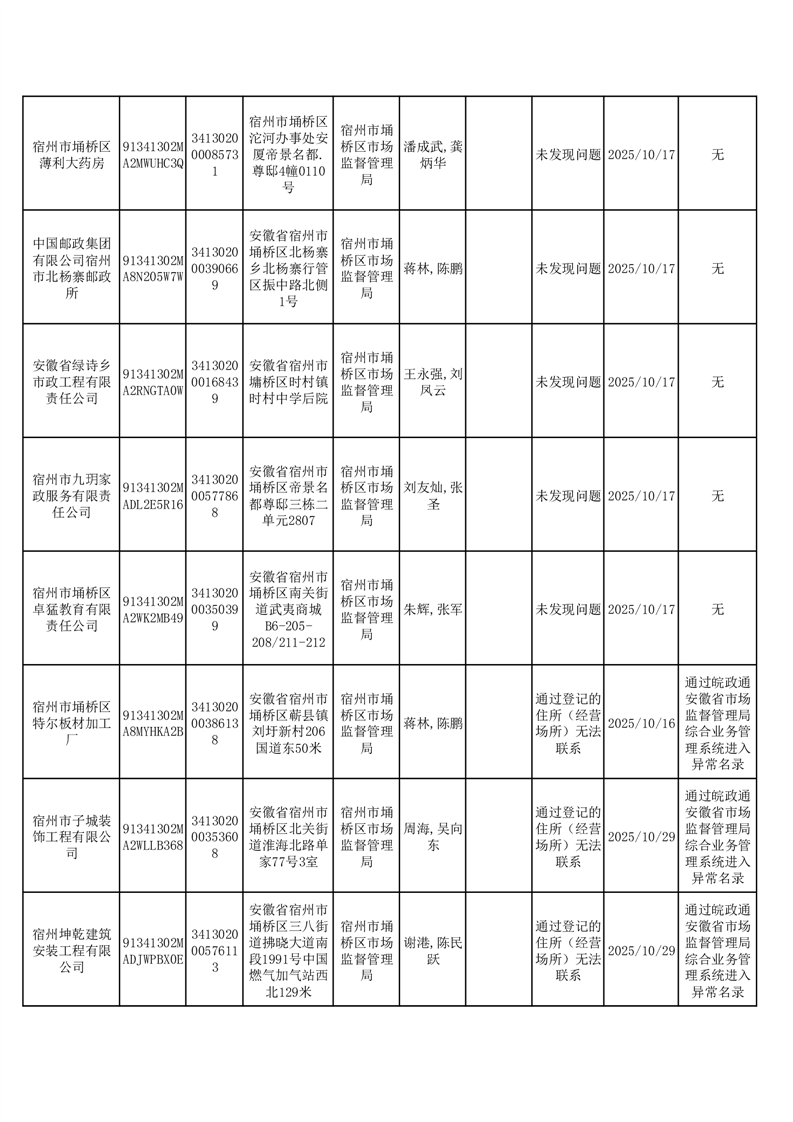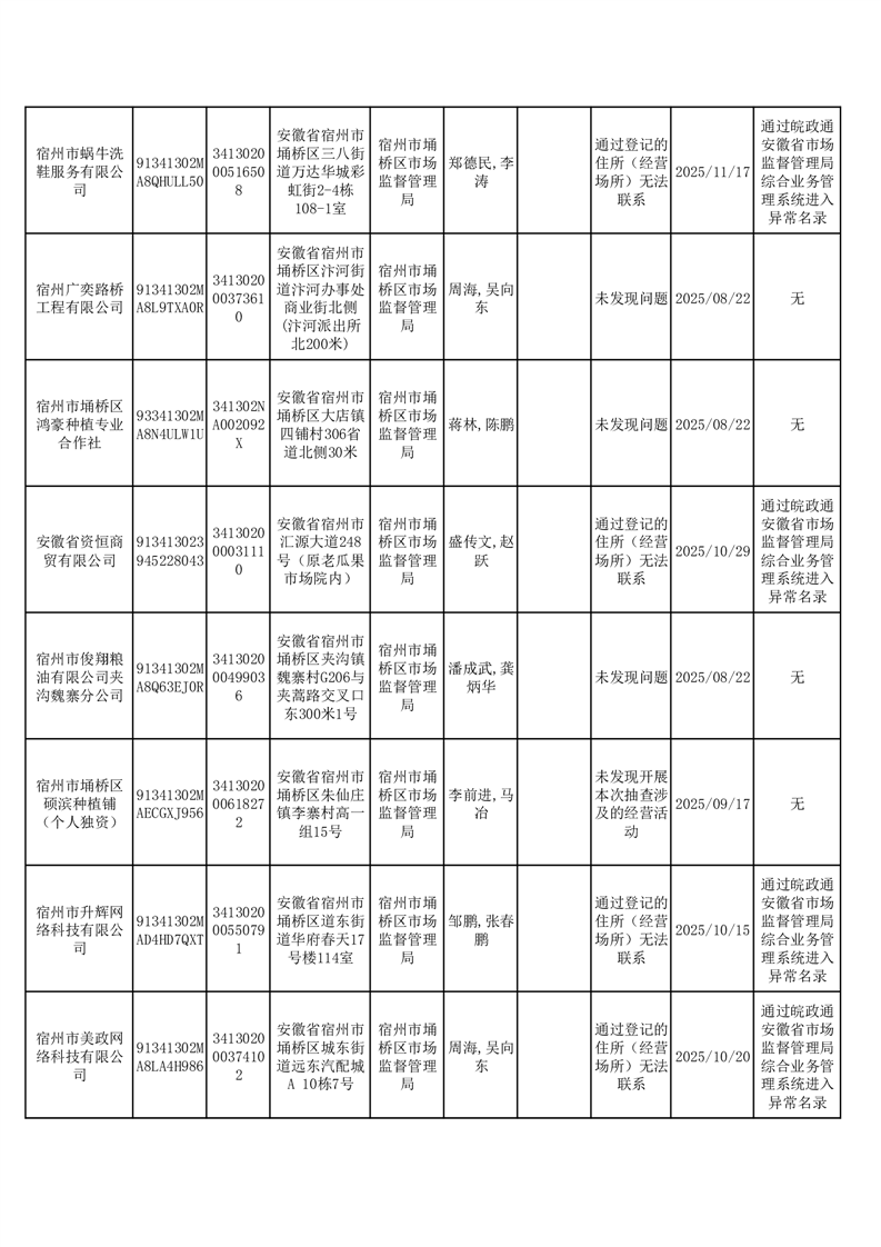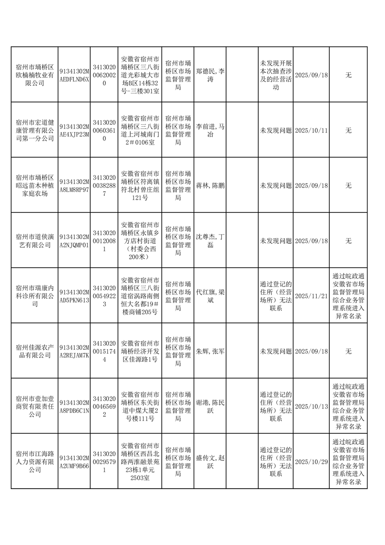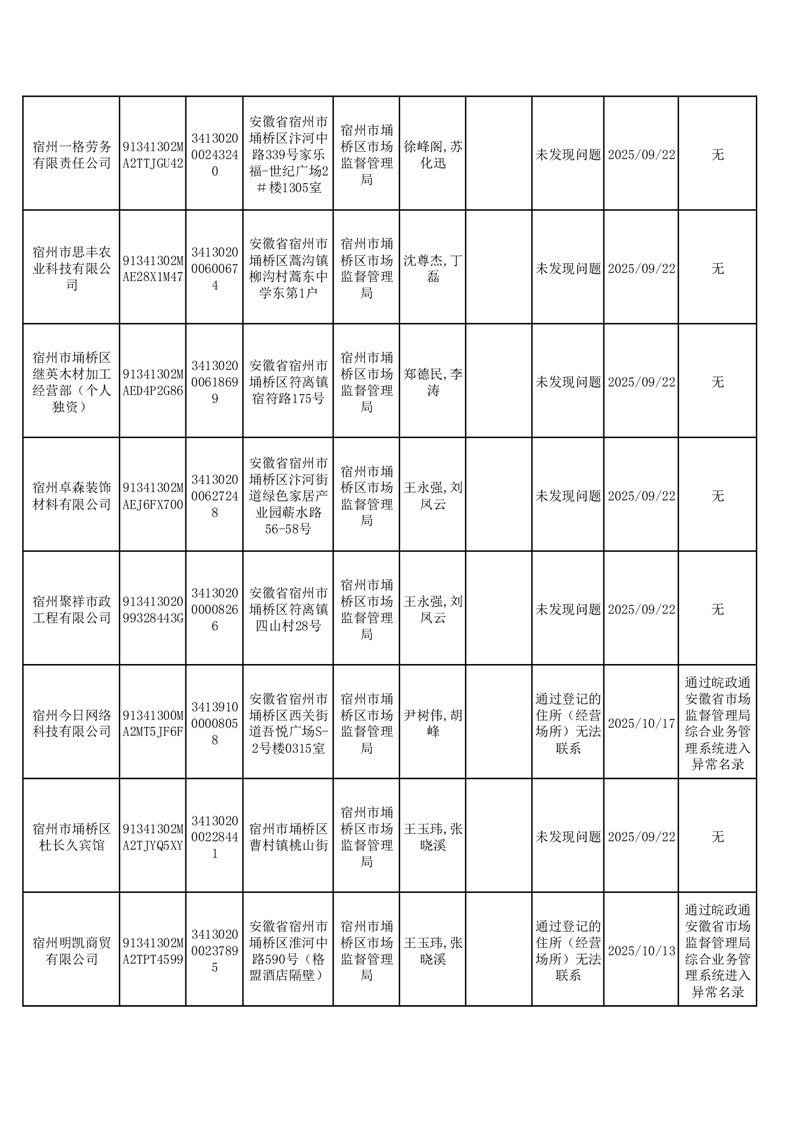 | 名称: | 宿州市埇桥区市场监督管理局2025年全区市场监督管理部门不定向企业抽取计划(检查结果) | ||