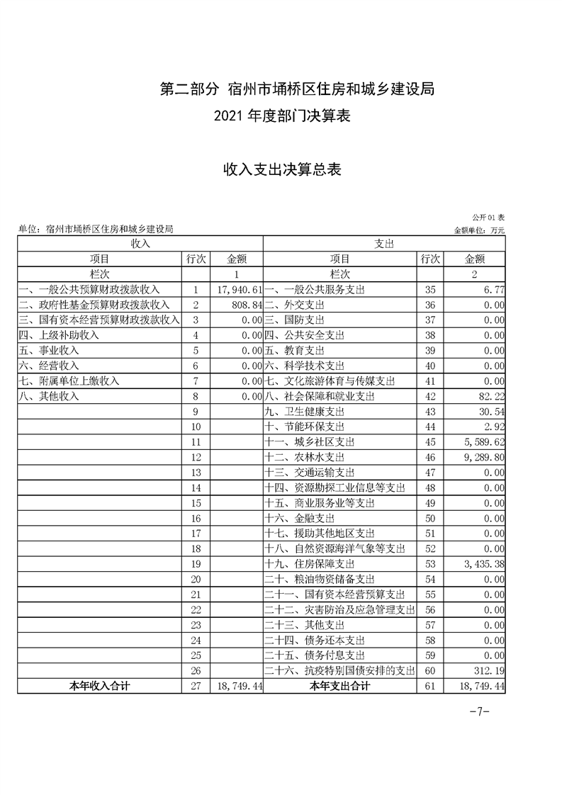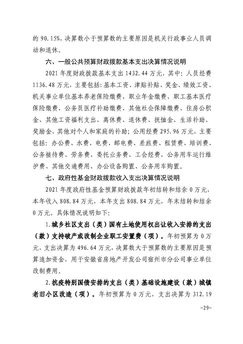 宿州市埇桥区住房和城乡建设局2021年度部门决算