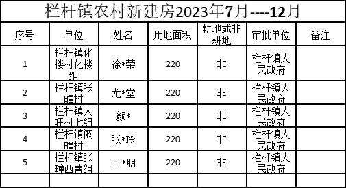 【2023年】栏杆镇7月-12月宅基地使用情况统计表(非耕地)