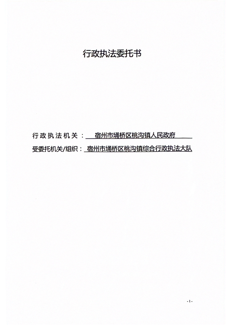 桃沟镇人民政府行政执法委托书