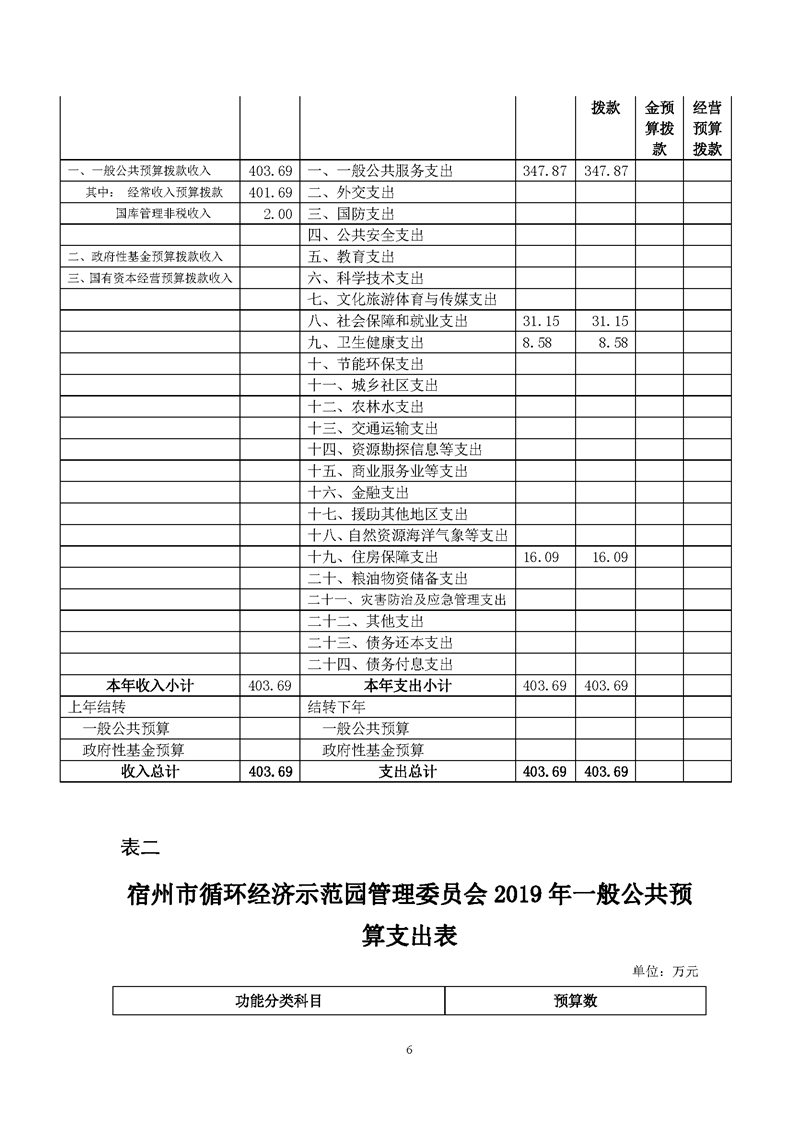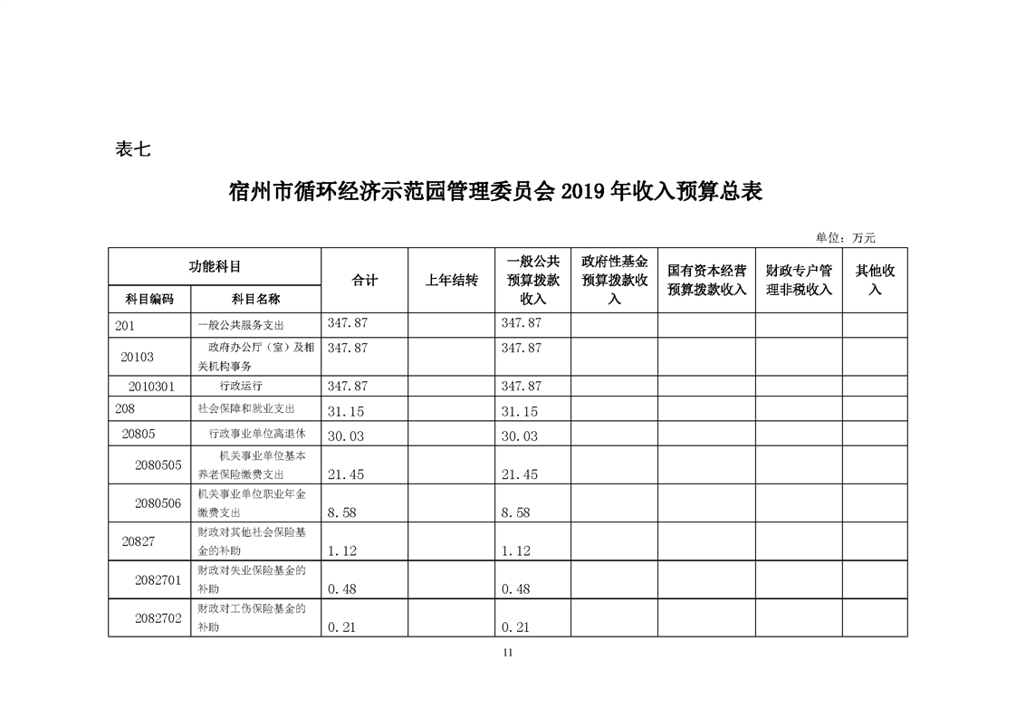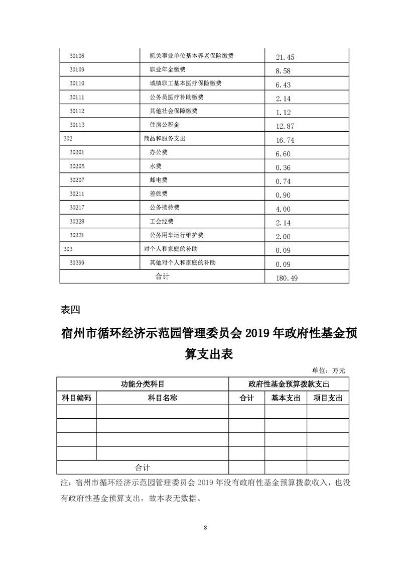 2019年宿州市循环经济示范园管理委员会预算公开说明