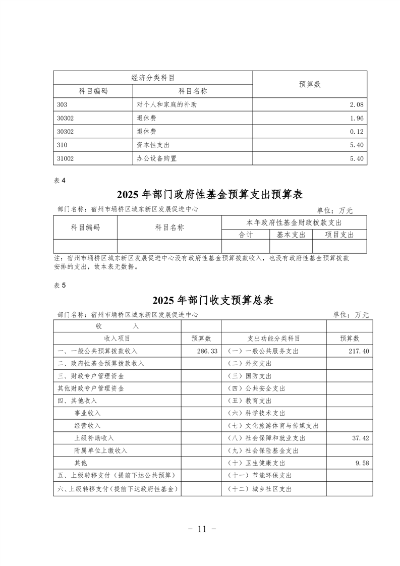 宿州市埇桥区城东新区发展促进中心2025年部门预算